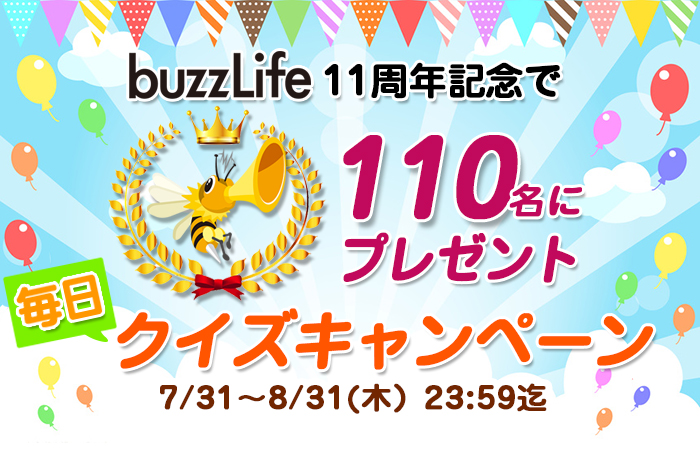 11周年にちなんで、合計110名にプレゼントが当たるクイズキャンペーンを実施します。期間中、毎日チャレンジしよう!![]()