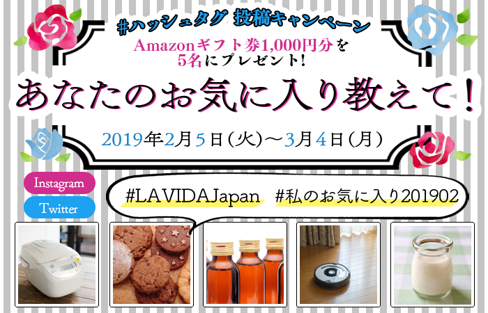 ・ハッシュタグ「#LAVIDAJapan」「#私のお気に入り201902」をつけて愛用商品を投稿