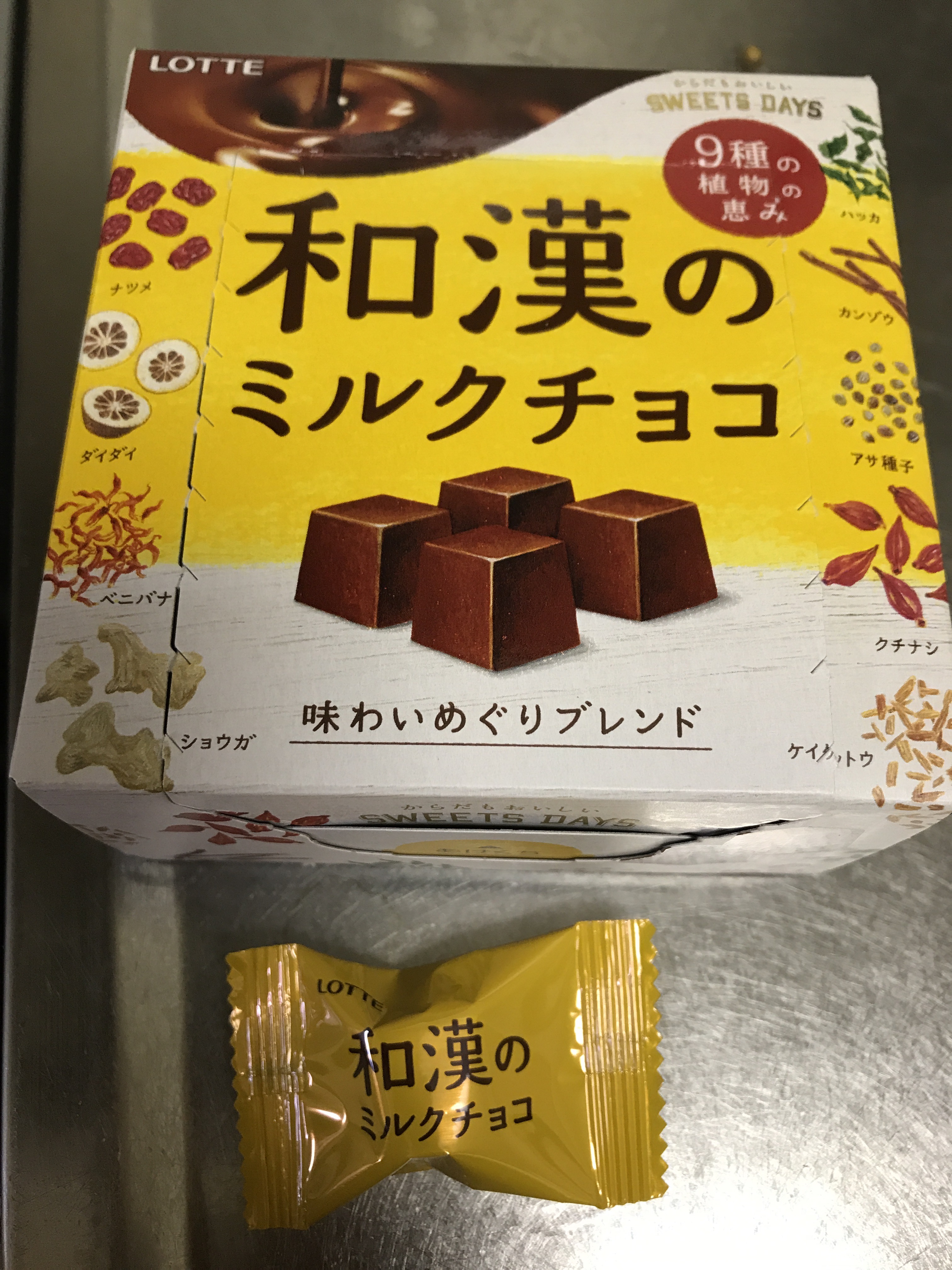 ロッテの新商品「和漢のミルクチョコ」を食べました(^^)