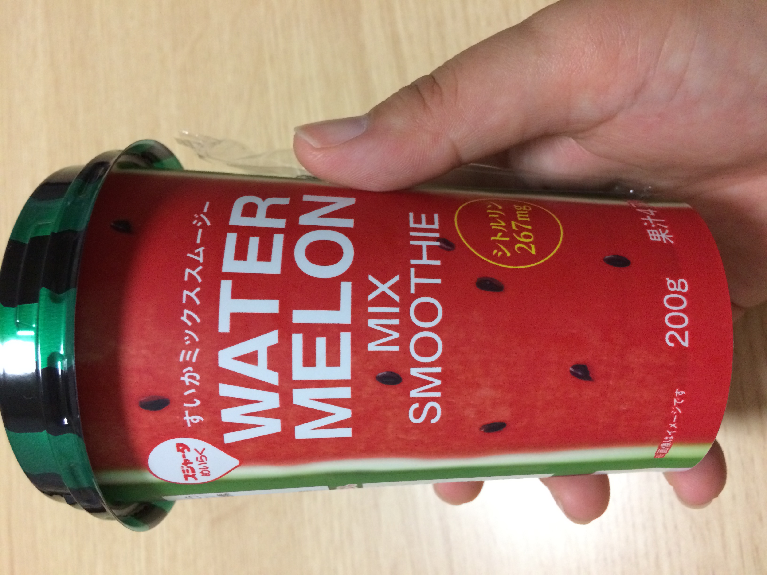 ミニストップで買いました。 夏場にスイカ味のドリンクが出るとついつい買ってしまいます。パッケージもしっかりスイカで可愛いですね。 こういうの見ると味への期待も高まります! 飲むとザラっとしたスイカの食感があって、味もスイカをしっかり感...