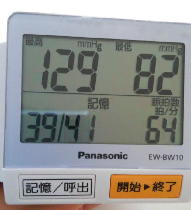 測り始めてからゆっくりと血圧が下がり始め、今はほぼ正常値です。