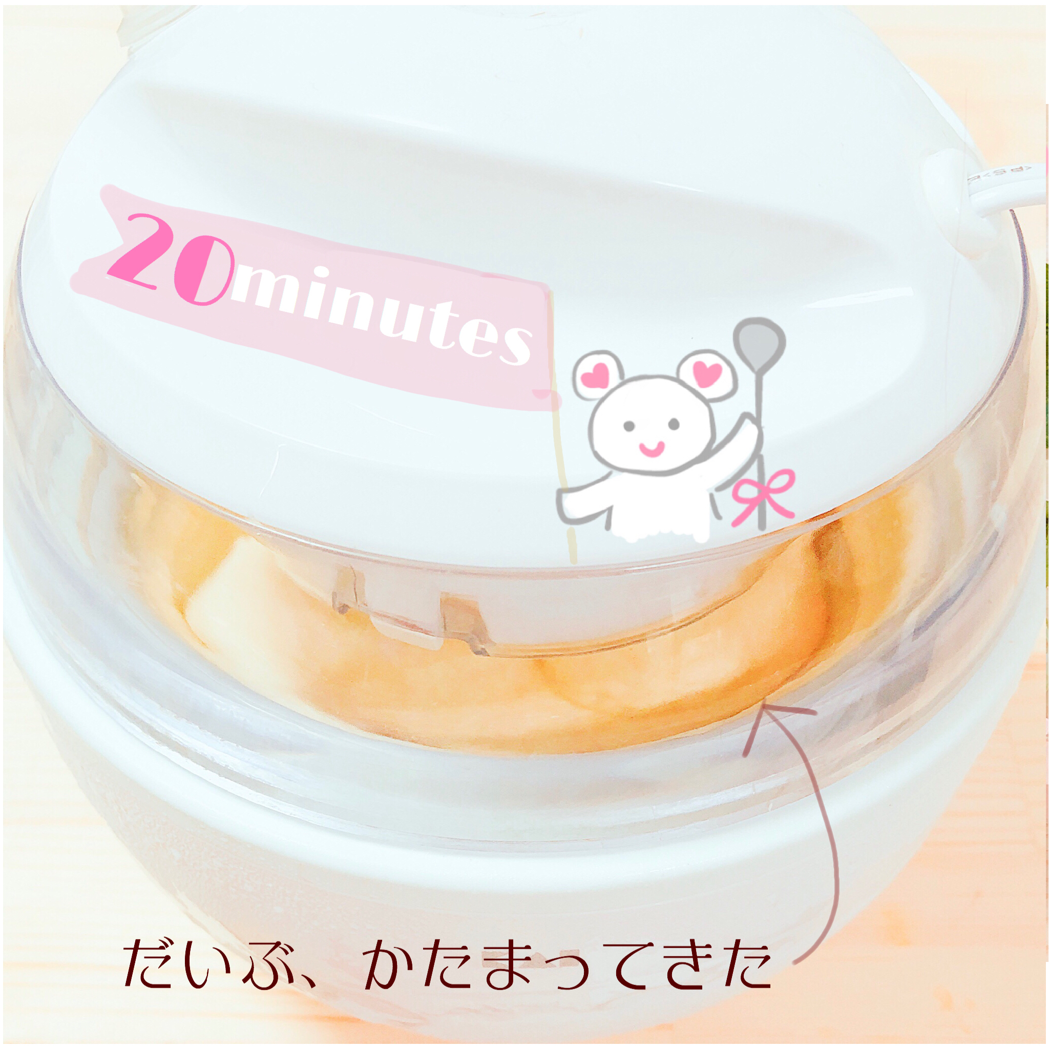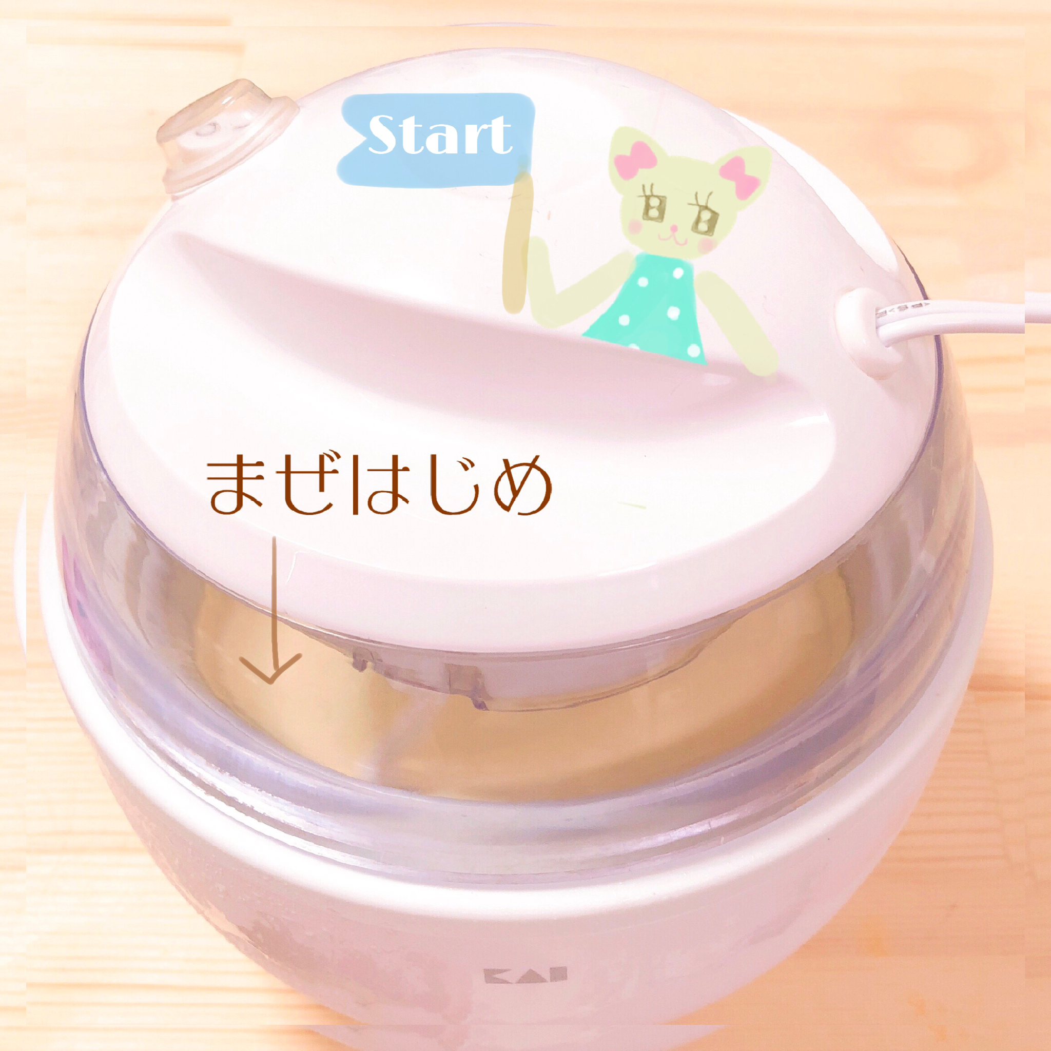 あらかじめ冷やしておいたアイスクリームメーカーにお好みの材料を入れてスイッチを押して20分♥️