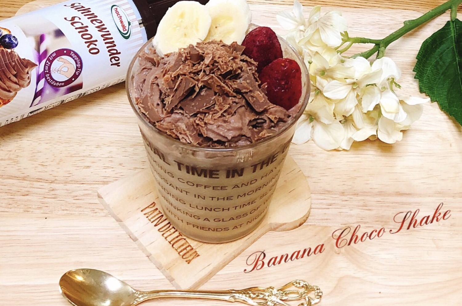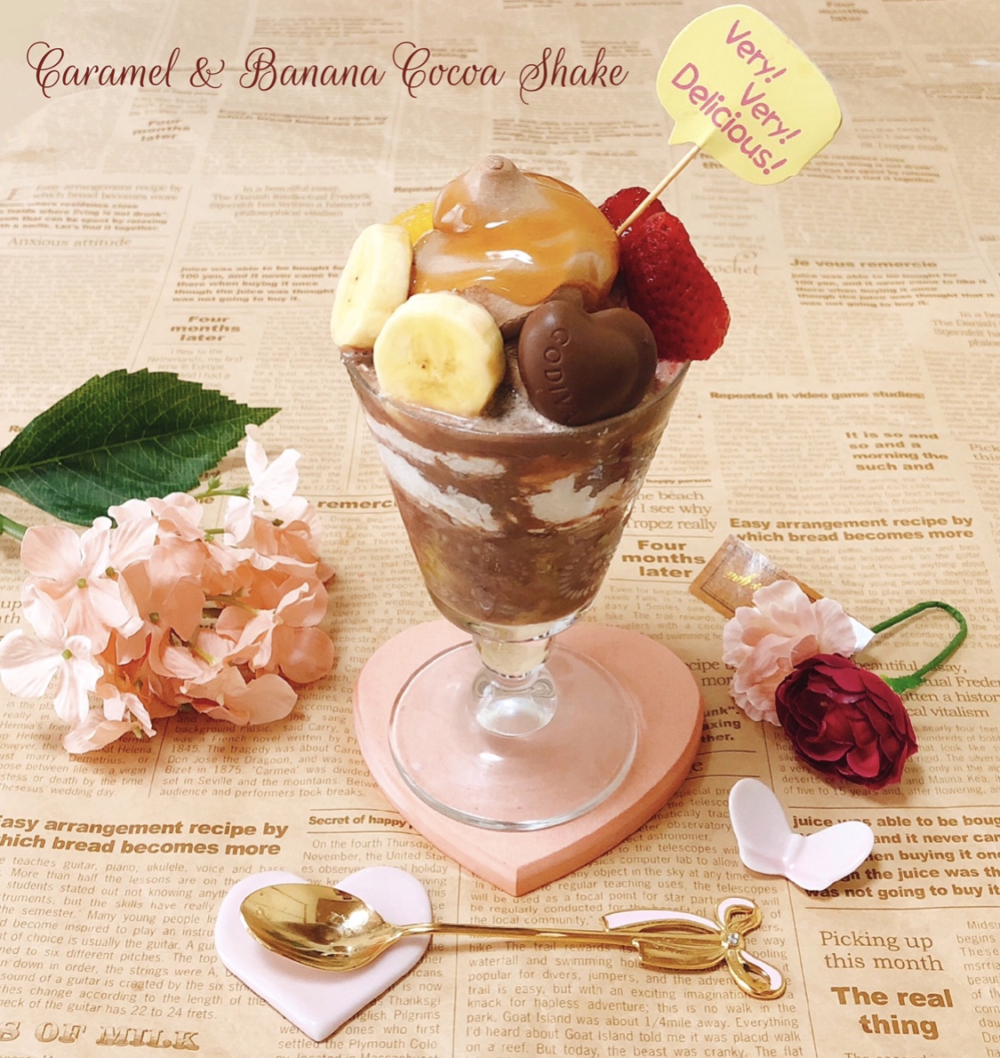 𓇼牛乳、バナナ、ココアで、「バナナココアシェイク」