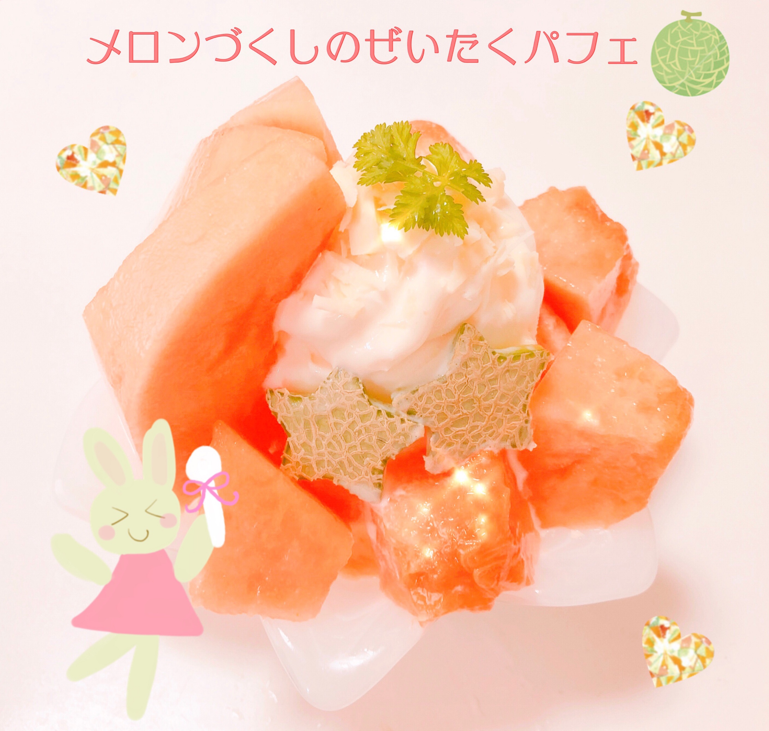 北海道からメロンが送られてきましたので、記念に(笑)贅沢メロンパフェを作りました♥️