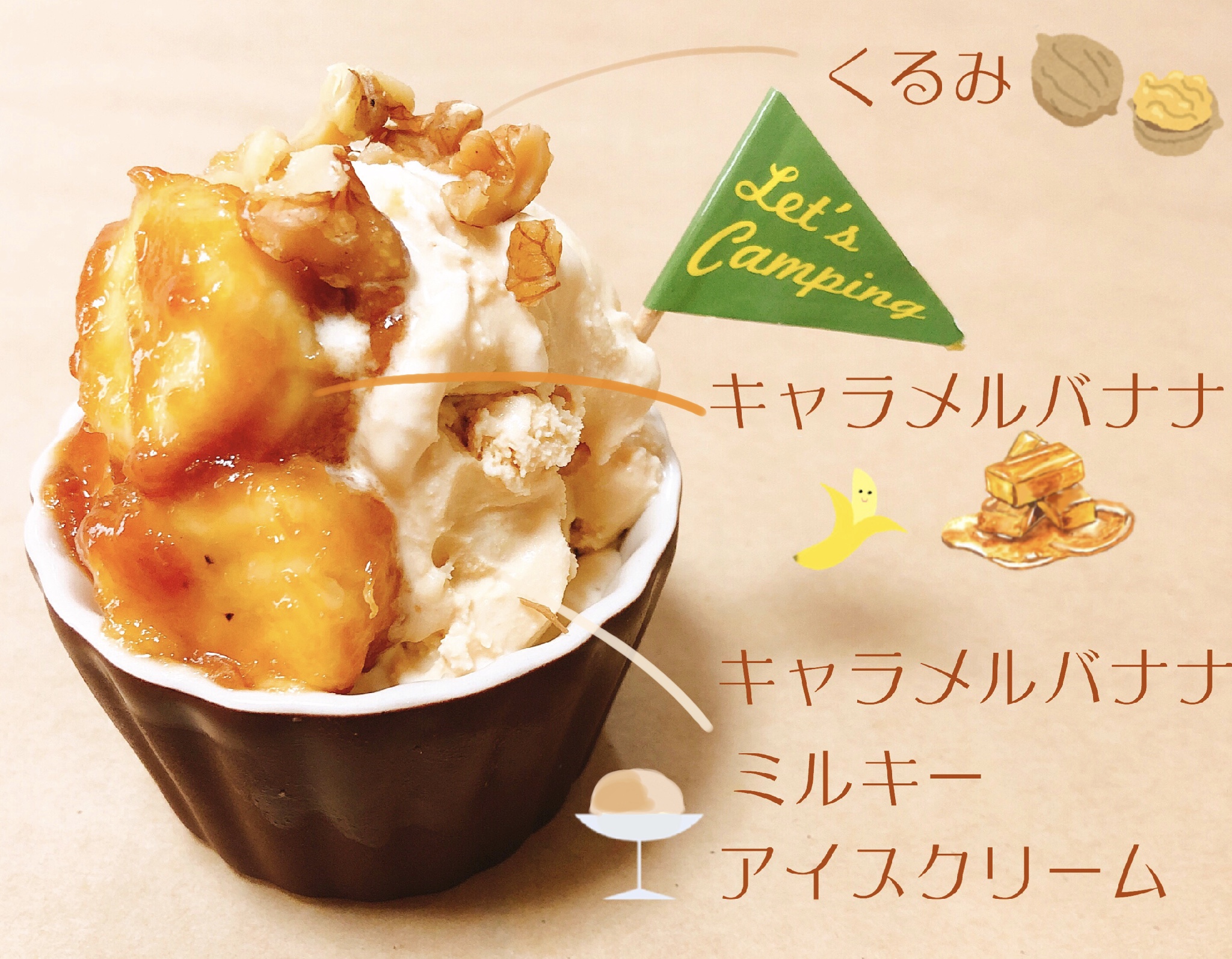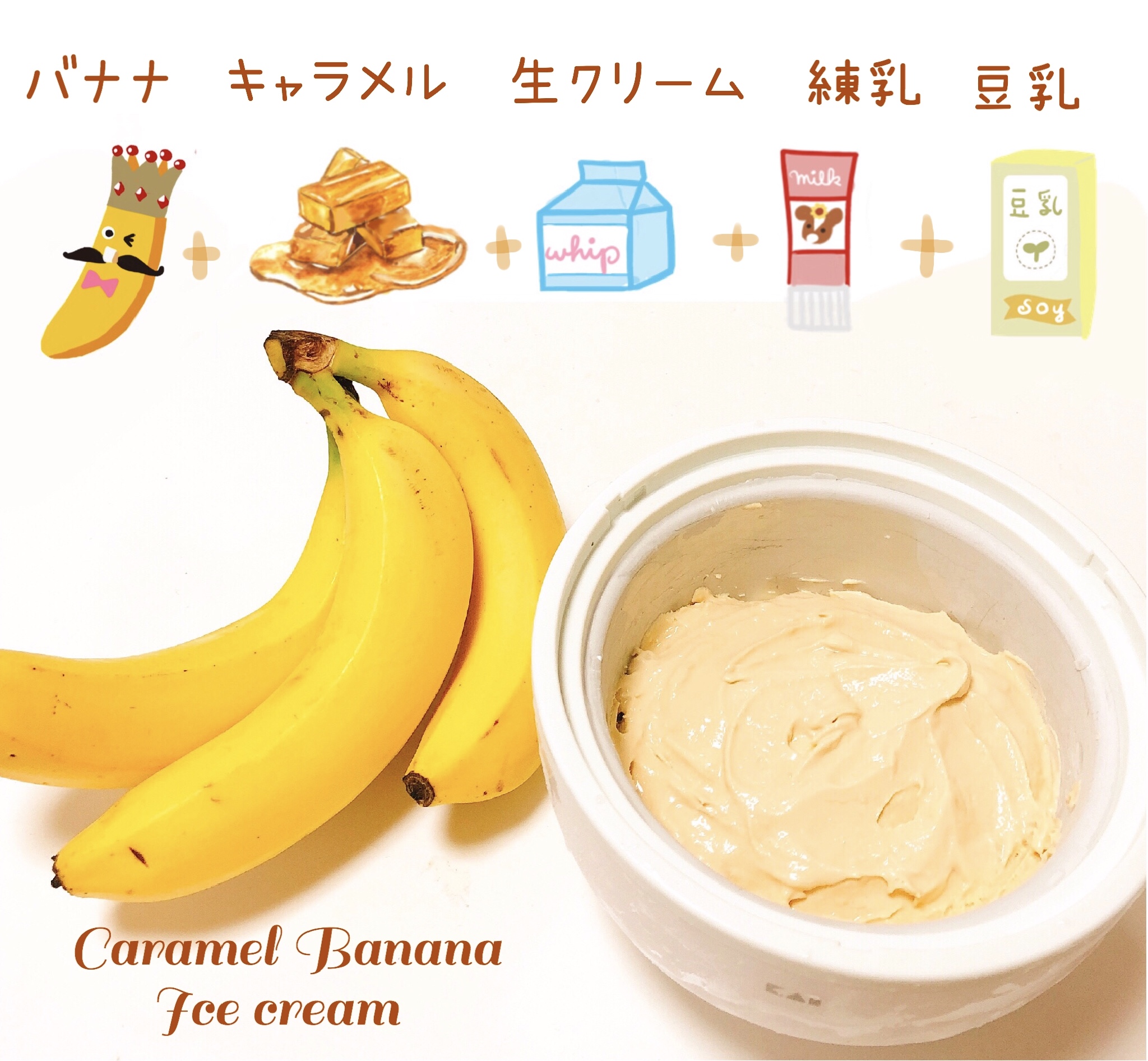 材料は後からも紹介しますが、基本の材料「生クリーム、練乳、豆乳」に「キャラメルバナナ」を入れたもので、簡単にできますよ*̥₊˚‧o(⁎˃ᴗ˂⁎)o‧˚₊*̥