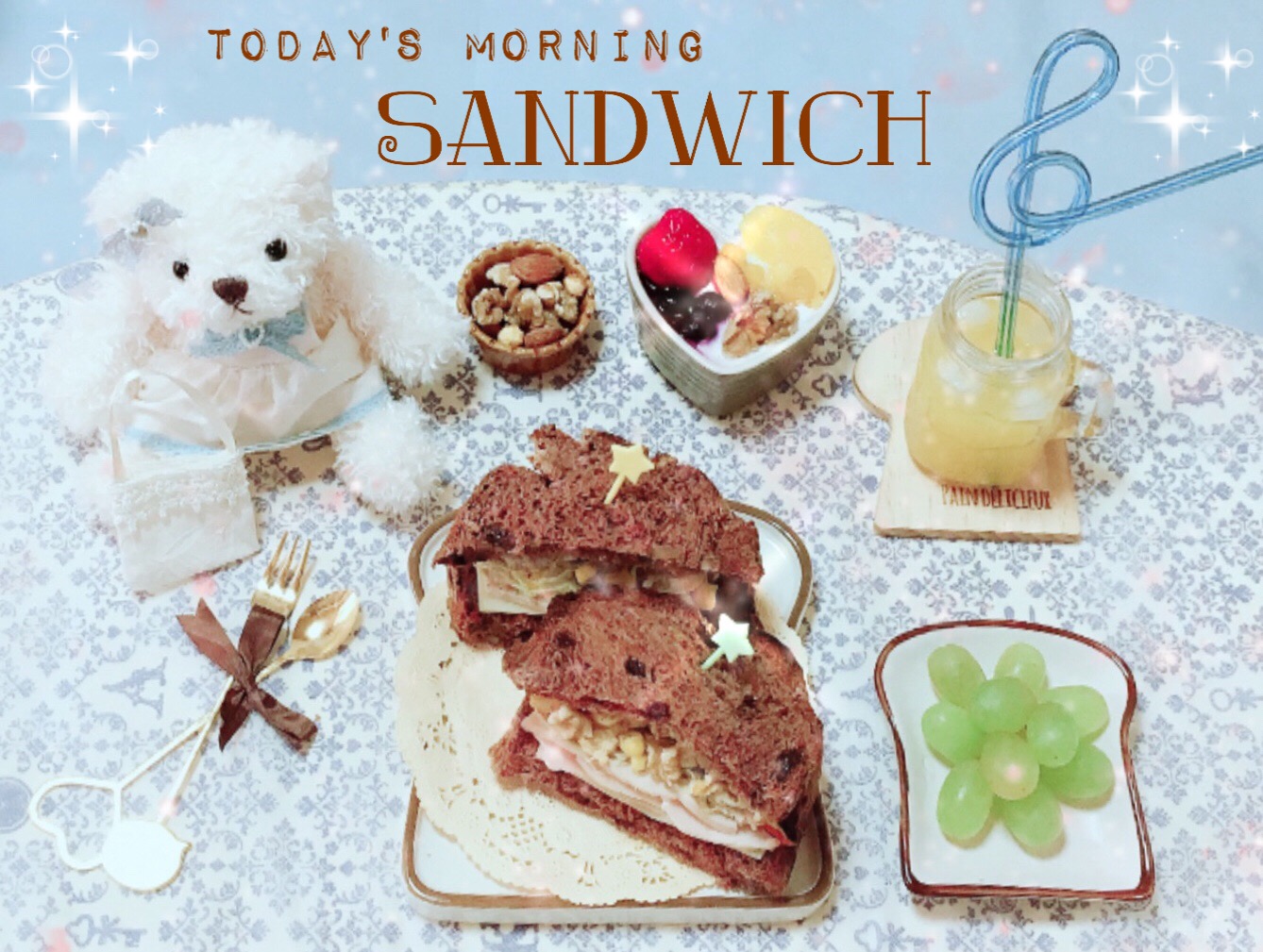 「くるみ食パン」で、手軽なサラダチキンを使って、「チキンサンドイッチ」を作りました₍ᐢ。•؎ •。ᐢ₎