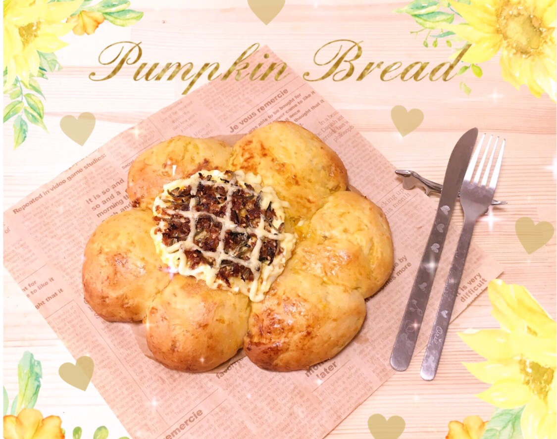 かぼちゃを練りこんで、「かぼちゃのひまわりパン𓂃 ◌ ͙❁」