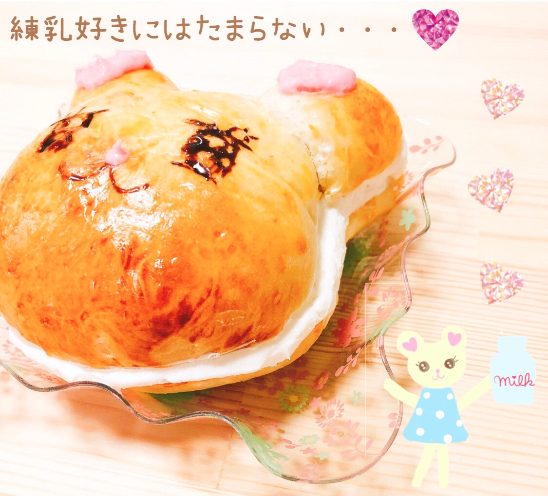 可愛いクマさんの形にして、練乳ミルククリームをサンド.。❁*.:。❁ ♡
