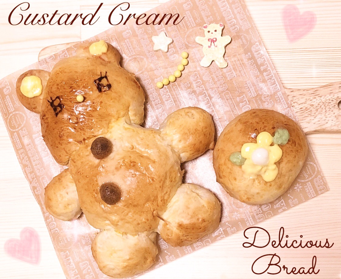 ふつうは、顔だけのパンが多いので、あえて、全身のくまさんクリームパンをつくりました 笑笑