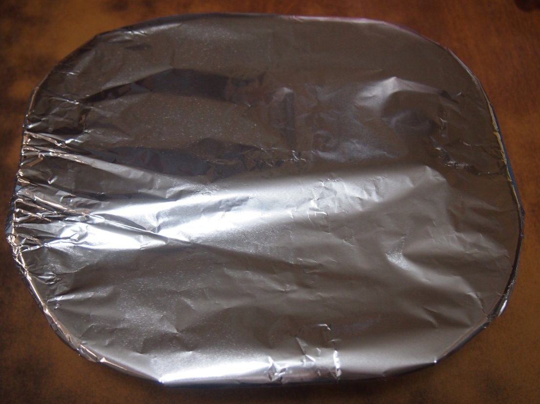 容器にぴったりとアルミホイルをかぶせ、