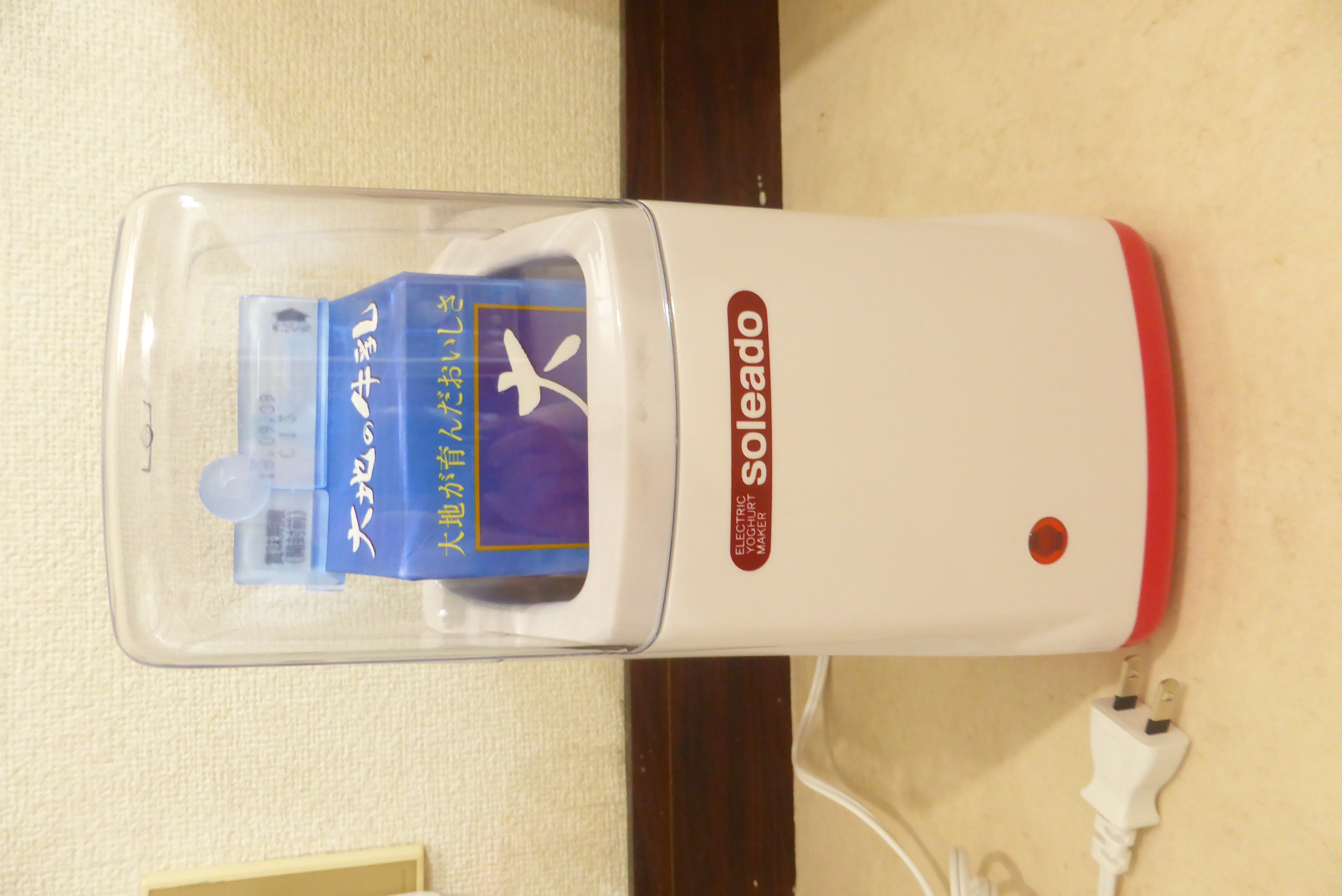 ④ それを牛乳パックに注いで、クリップで蓋をして、牛乳パックをシェイクします。 その牛乳パックを、ソレアードSO-161にセットして透明の蓋をかぶせて、コンセントを入れたら準備完了です。