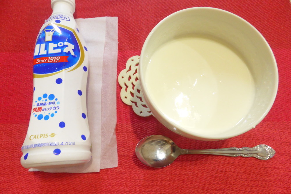 私はヨーグルト330gにカルピス大さじ1.5混ぜて、