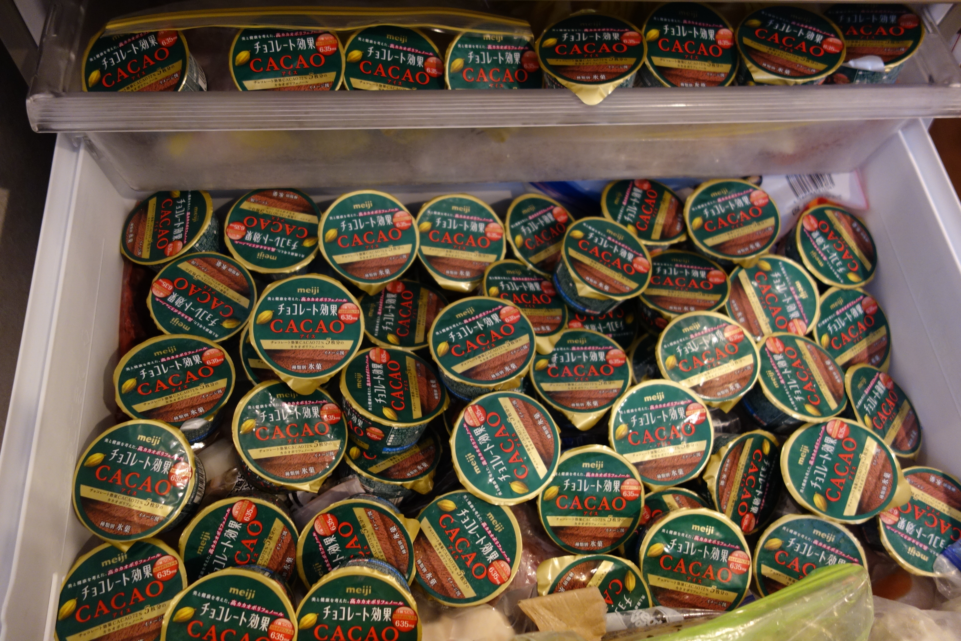 ついつい買ってしまいました! 明治さんのチョコレート効果を、しかも今回は流石の家内もびっくりーの合計60個!・これはきっと5年前にプロジェクトに当たらなかった怨嗟か、それとも単にこの単位でしか買え(買わ)なかったのか?