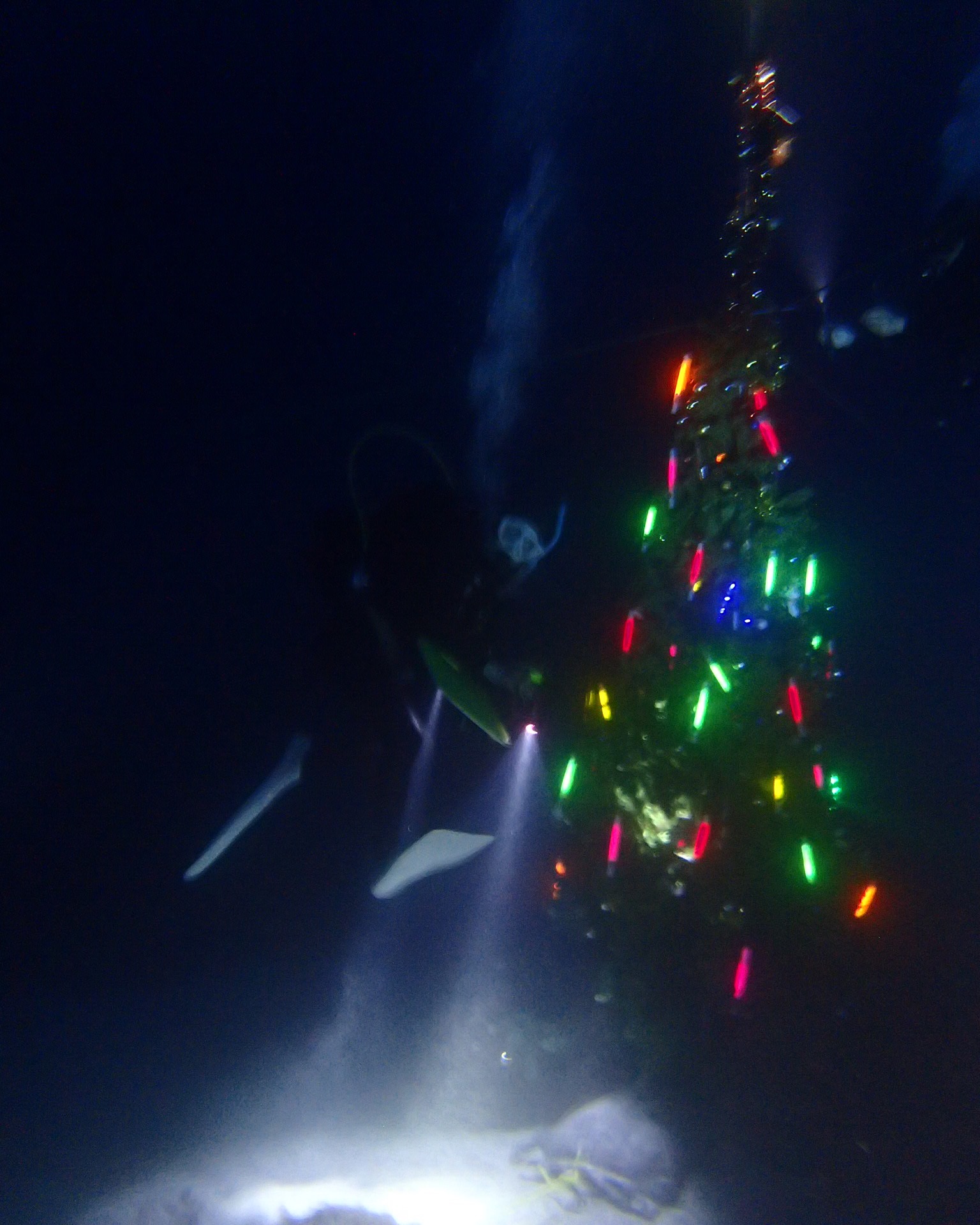 まさかの、海中に、クリスマスツリーが設置され、ライトアップしていました。クリスマスイブ限定の、ナイトダイビングです。とってもロマンチックな海でした。