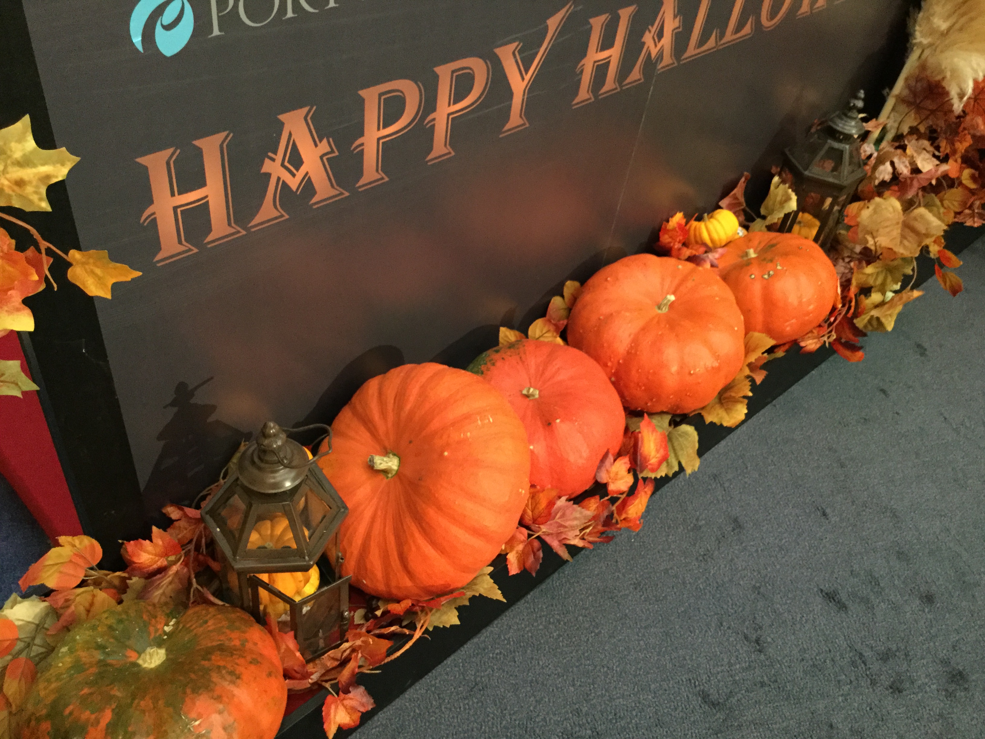 ショッピングセンターの通路のディスプレイ。いつもはただの溝なのに!はっぴーはろうぃん!