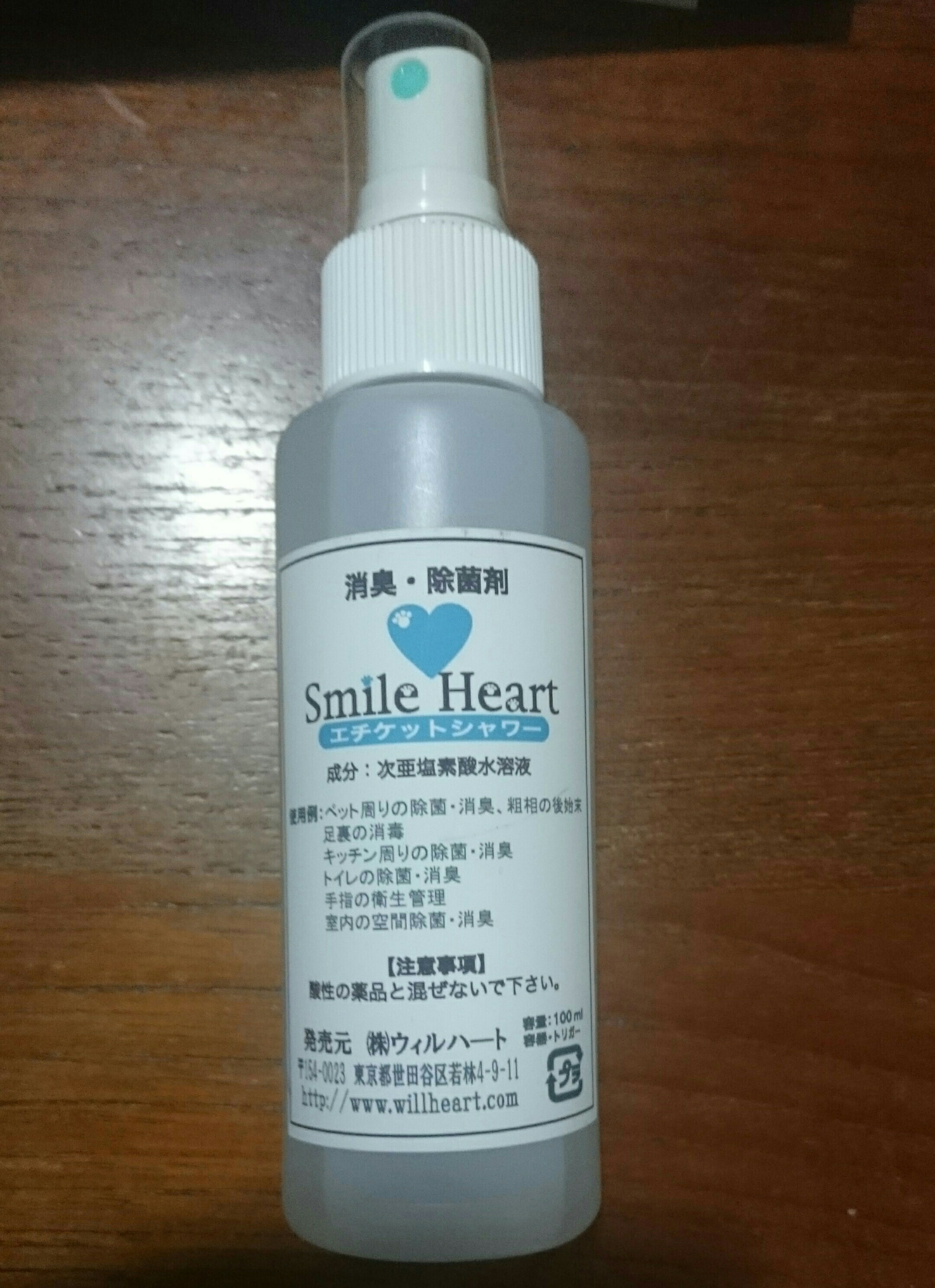 ペット用消臭・除菌剤Smile Heart エチケットシャワー。(株)ウィルハート