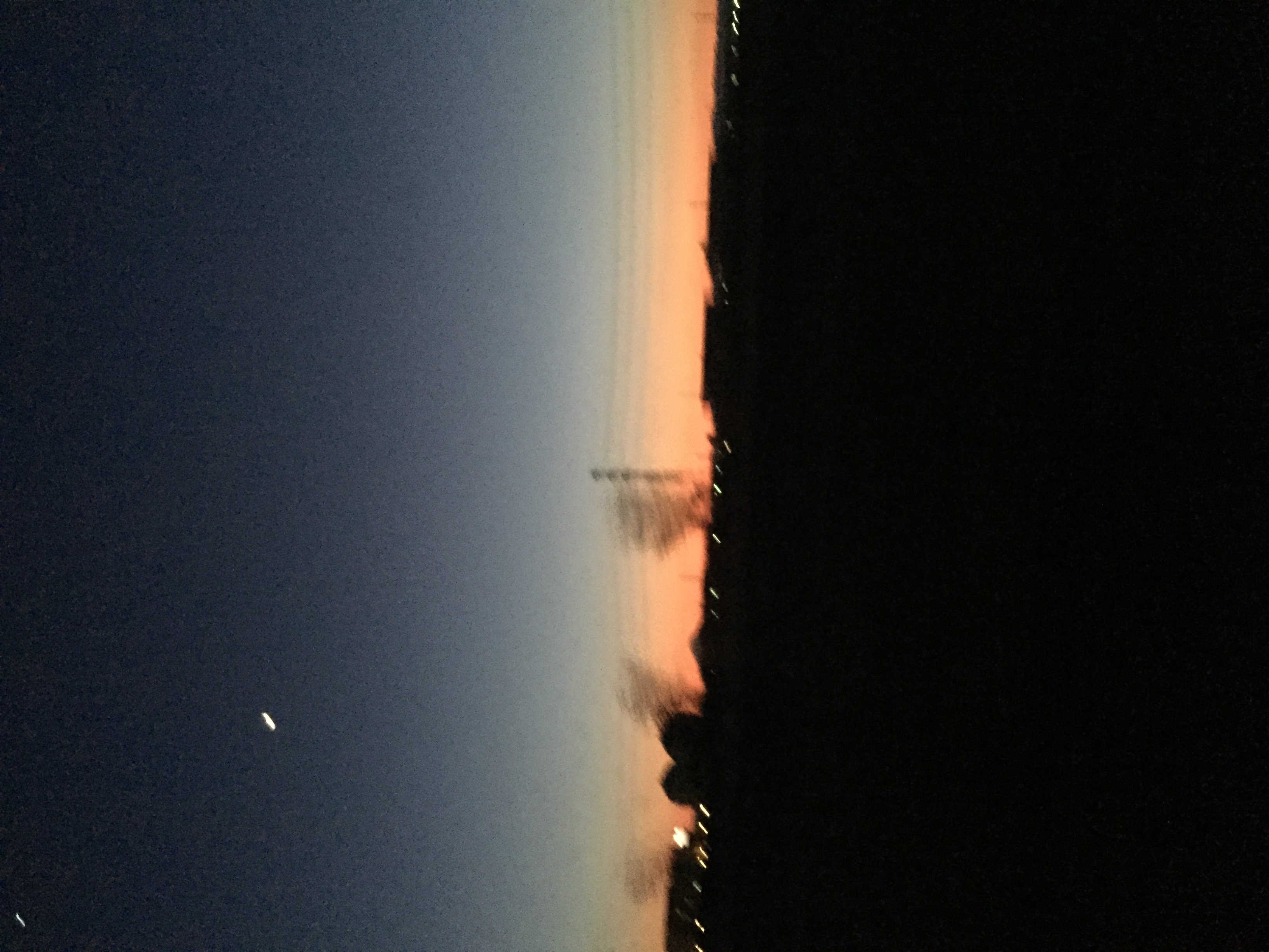 走行中に撮影しました。左上の光みたいのは、月と星です。