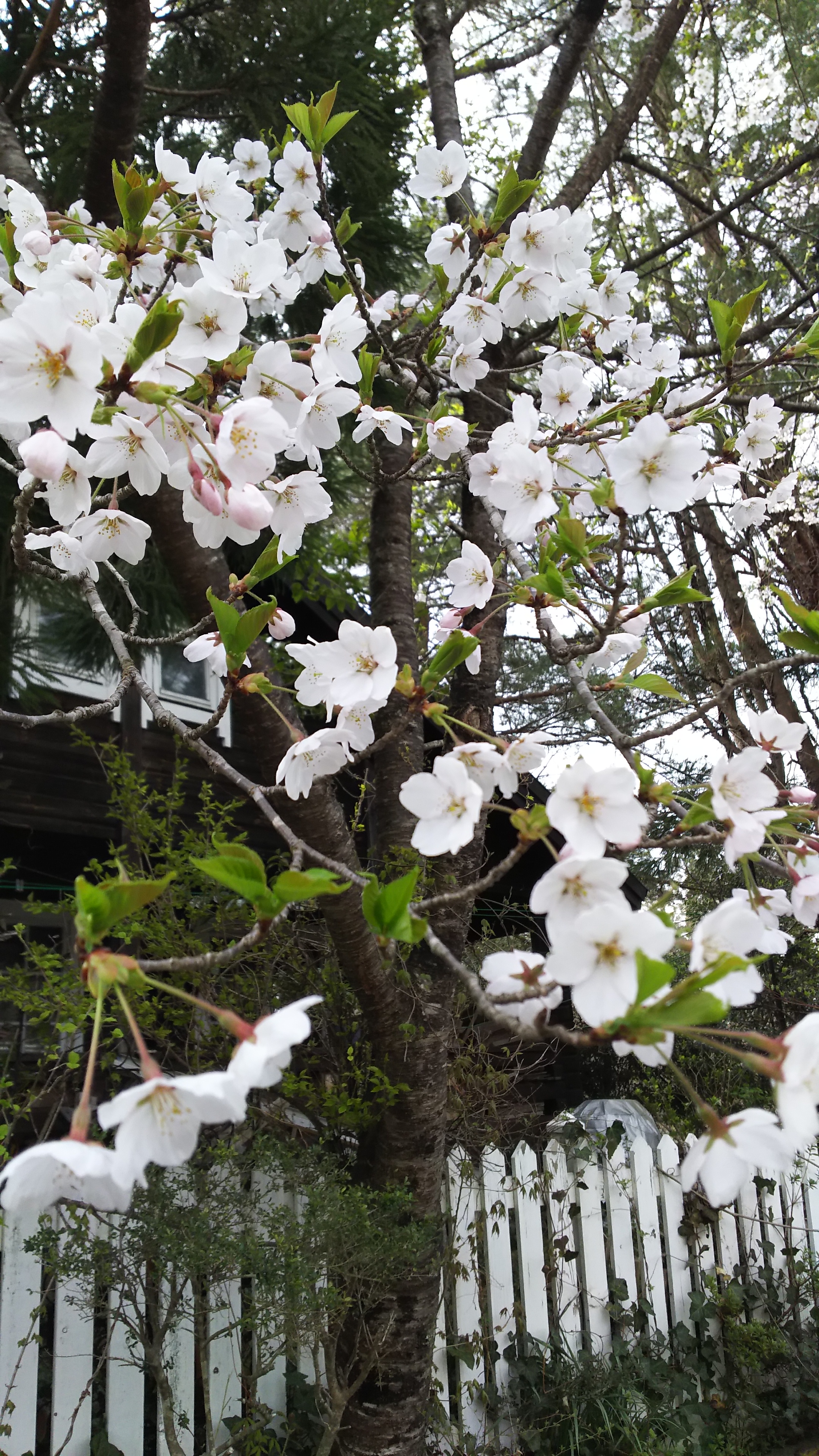 桜前線は青森の弘前あたりだそうですが、ホントにやっとわが家のところも咲いてくれました。あまり雨は強くなかったので、もう少しだけ眺められそうです(#^.^#)