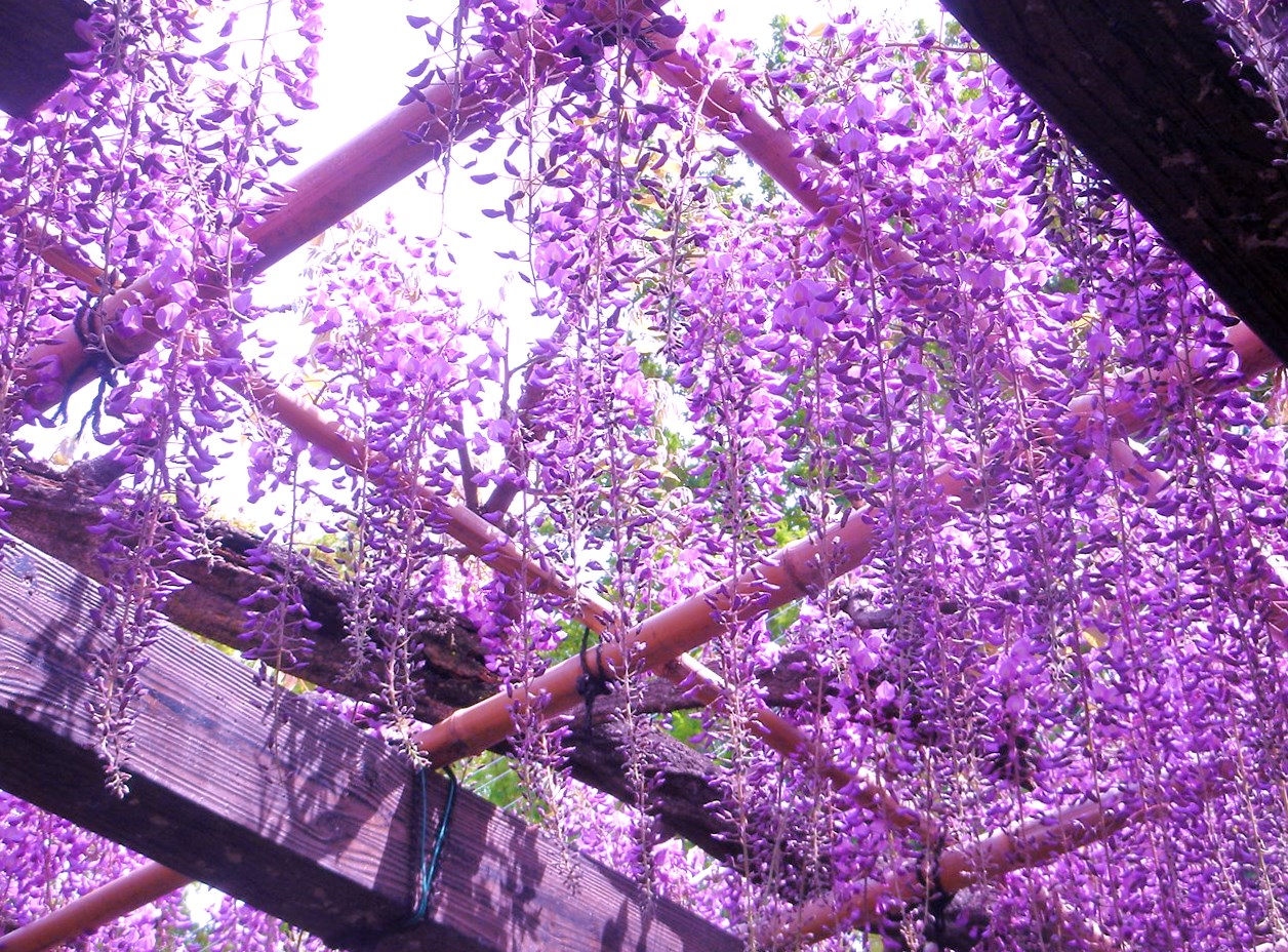 きれいな色ですね。祖父母の庭にあった藤棚を思い出しました。匂いに誘われて近くに寄って見たいのに、大きな羽音を立ててずんぐりむっくりのクマンバチが寄ってくるので従姉妹たちと一緒に逃げ回っていました。