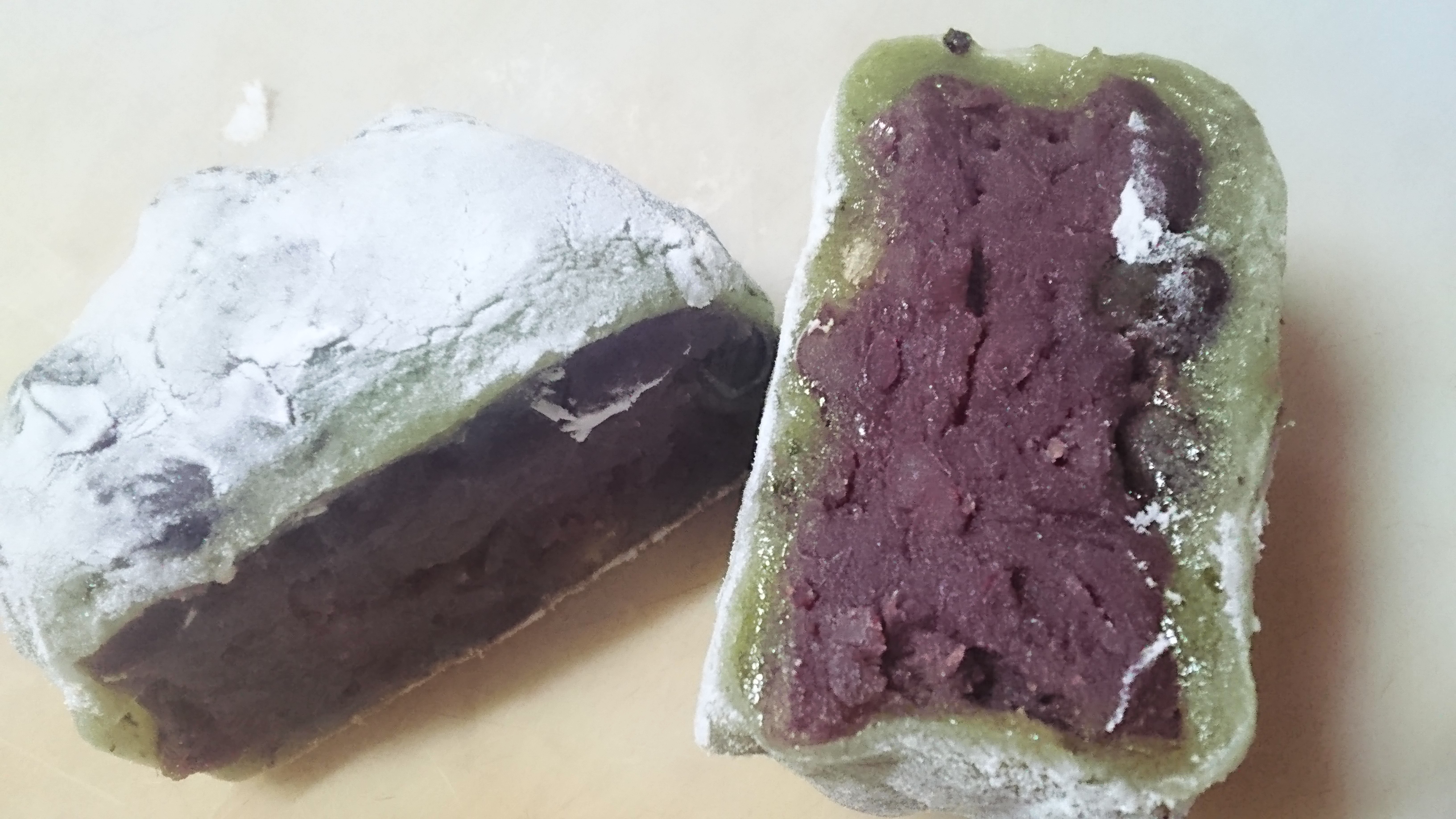 美味しそうな草餅の大福。餡がビッシリと入って甘々ね~ 私も むふふふで笑いました!!