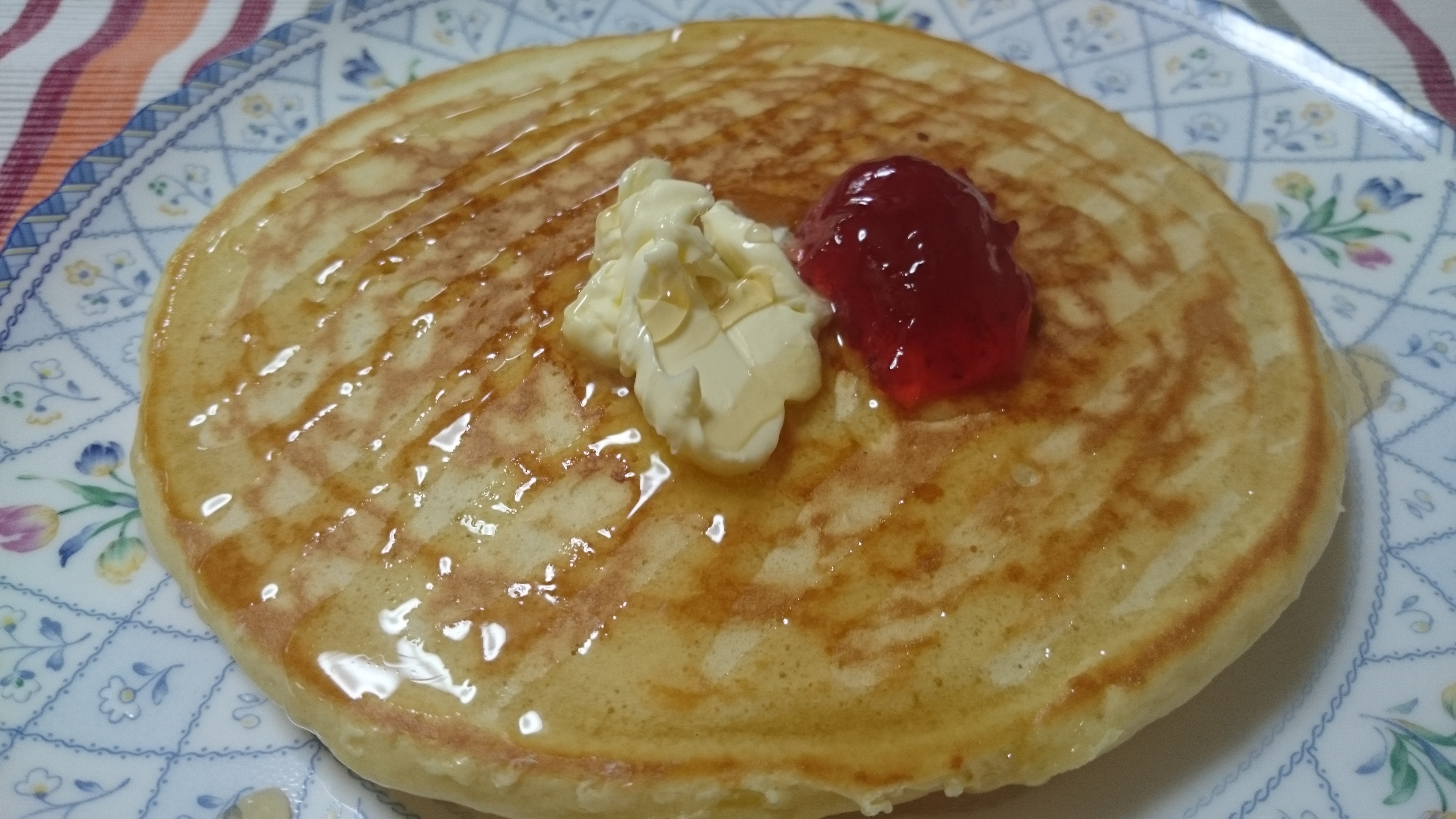 カルピス入りホットケーキ、朝からモリモリ食べました。