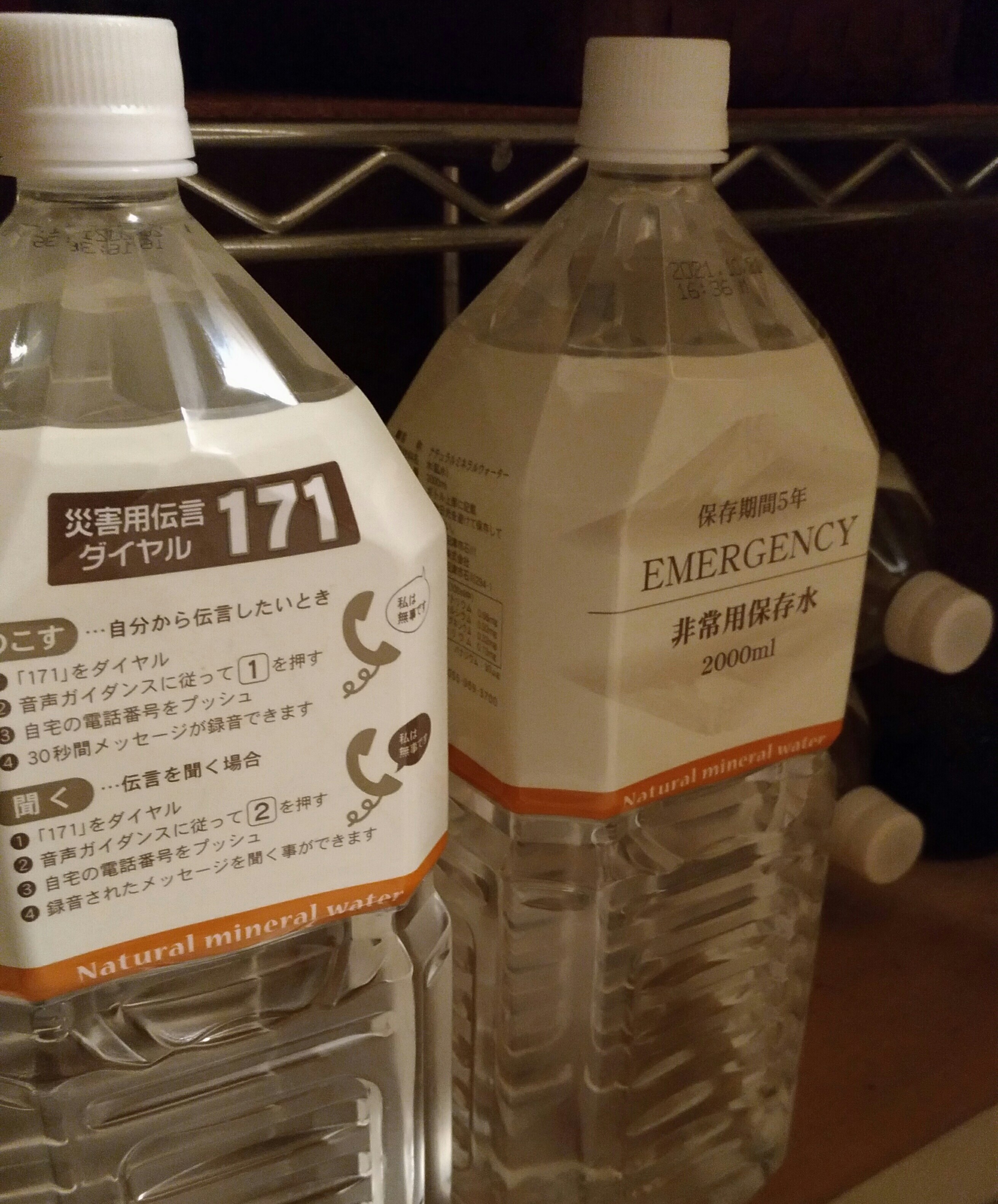 .去年から水の備蓄は始めました。もつ方がいいと思って備蓄用の3年以上保管できるこのタイプにしました。ただ味見して特にまずくもなかったので今は飲用にもしてます。普段からお水を買うご家庭なら、備蓄用じゃなくて普通の水が安いので良いですね。備蓄用はペットボトルが堅くて丈夫、逆に普段使うなら捨てるときかさばる。ボトルに災害用伝言ダイヤルが書いてあるのは、ナイスだと思います。だんだん減ってきたので、次また買うか、ふつうの水でローリングストックするか考え中です。備蓄用はやっぱり、手をつけず取っておくべきなんでしょうか?
