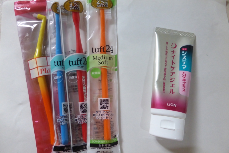 私も、歯科で歯ブラシ購入派です。「システマ ハグキプラス ナイトケアジェル」使っています。^^ ”液体ハミガキ”必要ですね。('◇')ゞ