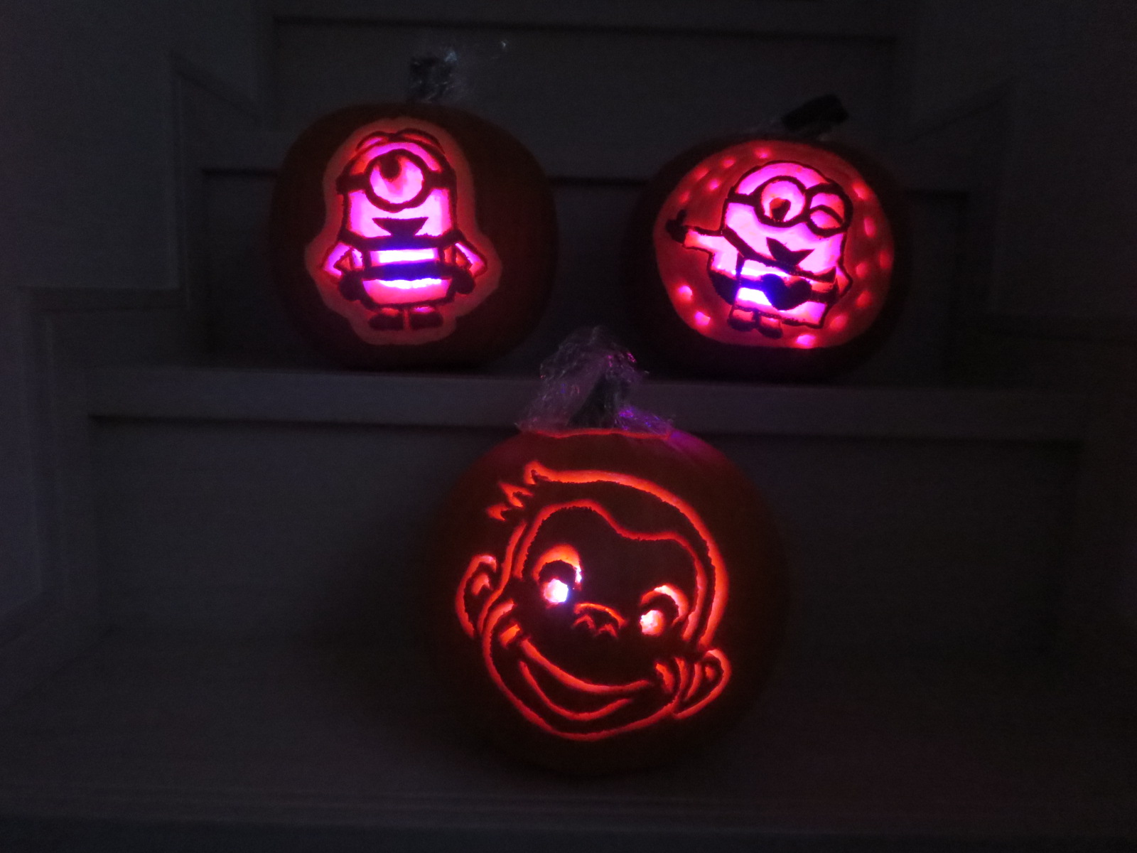 階段に並べて撮影したら、ご近所さんの養子へと旅立ちました!元気な『Trick or Treat!』が楽しみ!残り一個はもう少し手を入れ、夕方に間に合わせなくっちゃ!