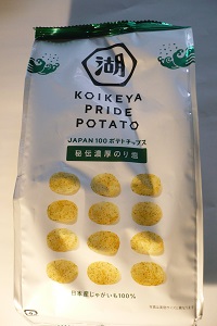 湖池屋プライドポテト。濃くて辛くて旨いポテトチップス 秘伝濃厚のり塩。三種の塩と三種の唐辛子で味付けされています。普通ののり塩も美味しいけど、こっちは唐辛子が癖になります。