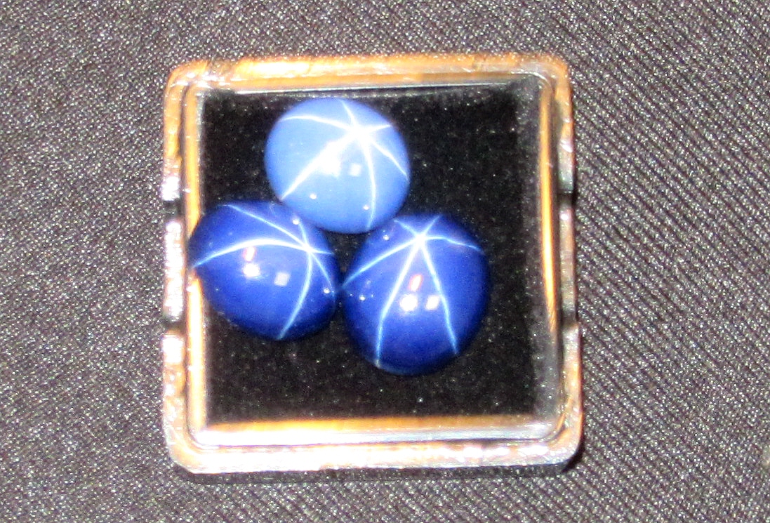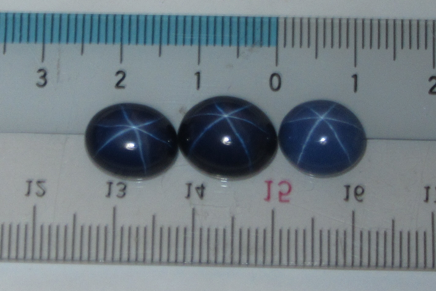 シンセ(合成)スターサファイアのカボションルース(3個で18、8ct、長辺1㎝強)が安く手に入りました。