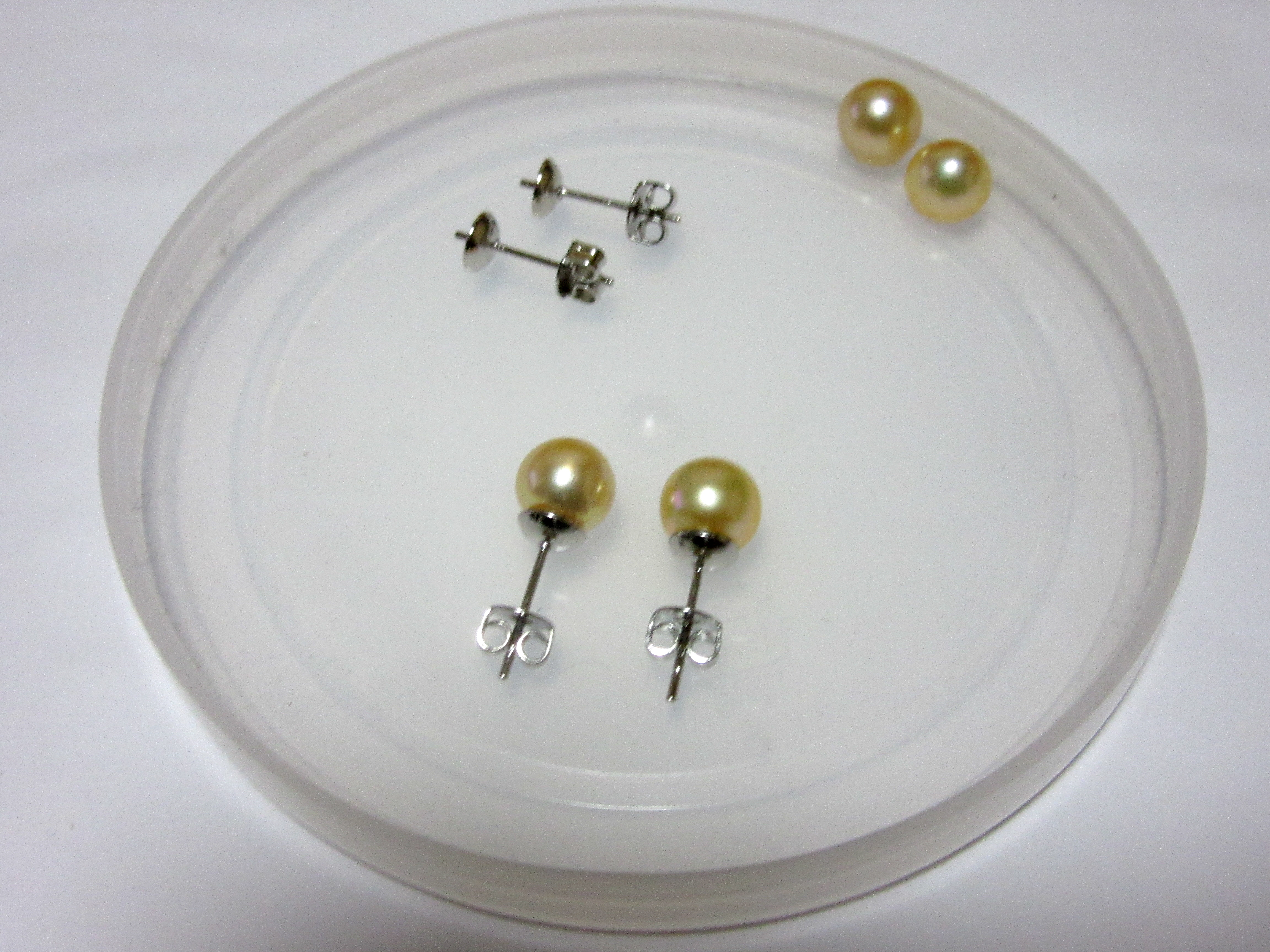 あこや真珠6,5ミリゴールド(黄色系)直付けピアス