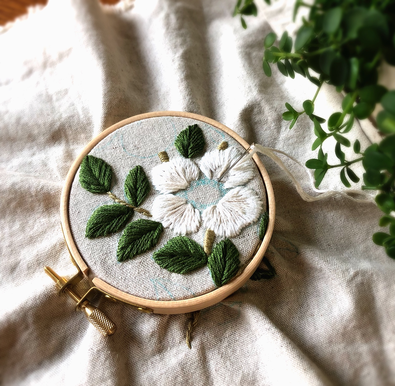 刺繍を始めた頃は1本取り刺繍から練習していましたが、今では6本取り刺繍までしています。