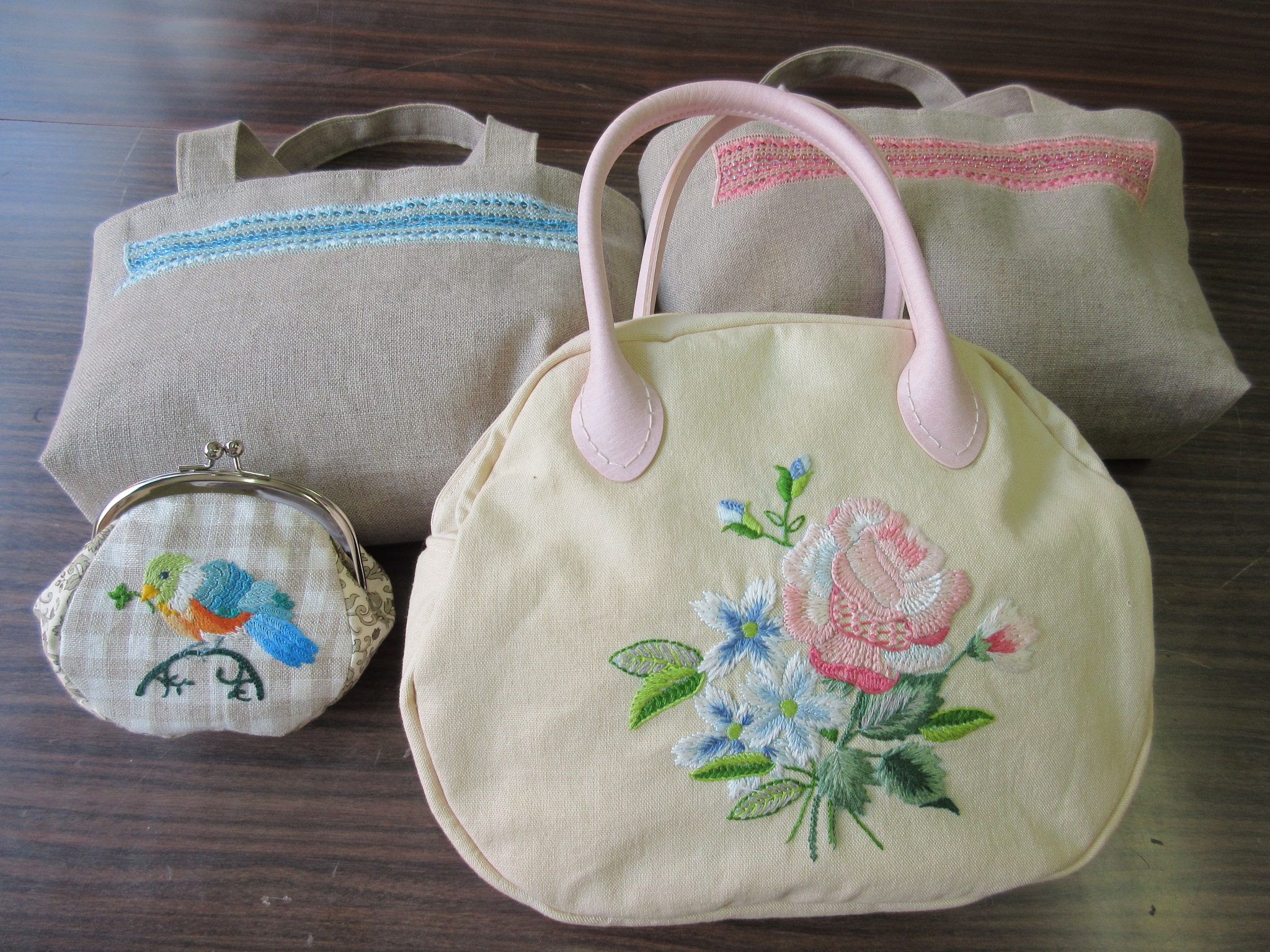 ピンクのバラの刺繍をミニボストンに仕立てるのにネットで持ち手を注文したのですが、予想以上にぴったりの色合いのものが届いて気を良くしています。