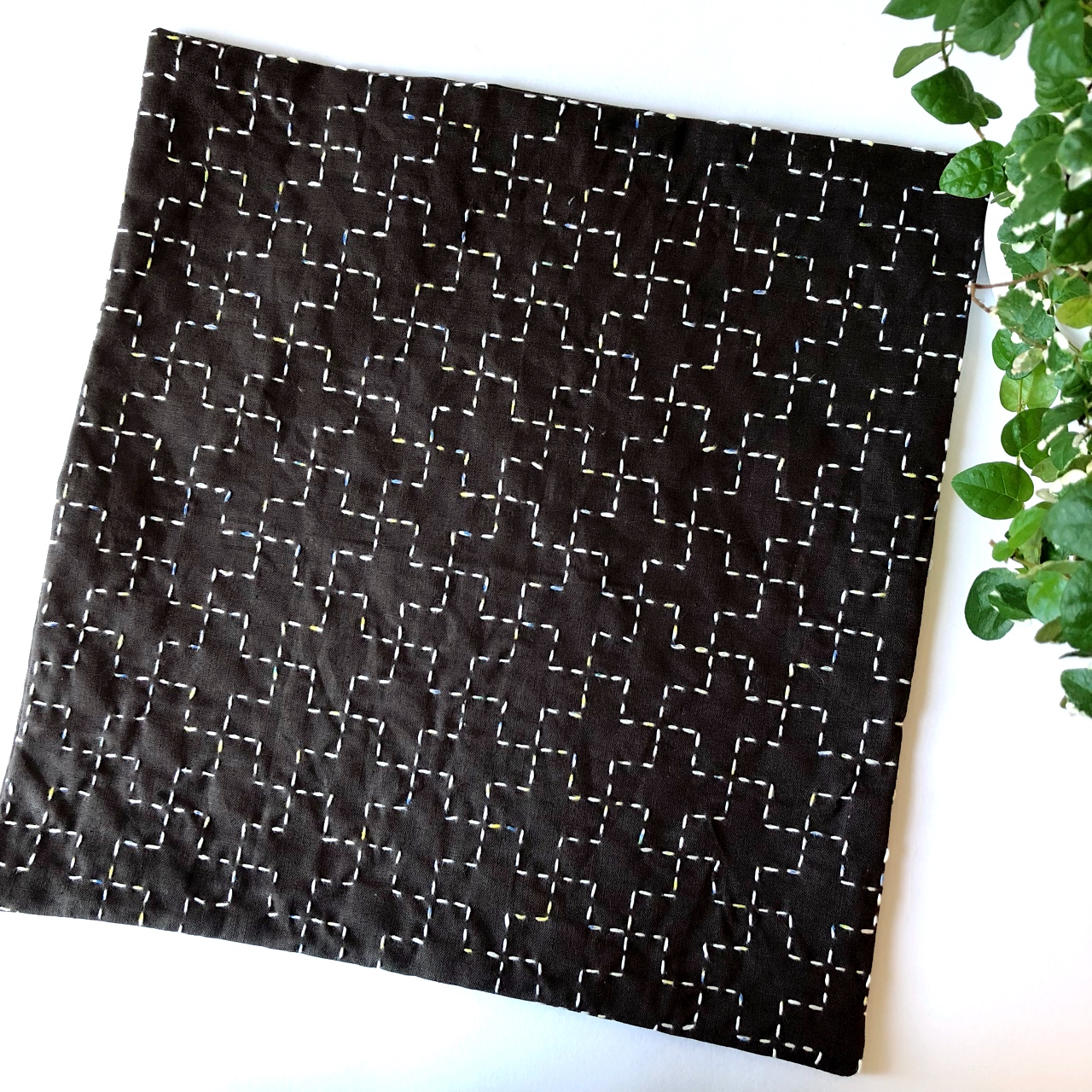 完成した刺し子ふきんの全体の雰囲気はこんな感じです。