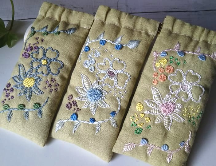 かわいい刺繍がぱっと目について素敵ですね。使い心地よさそう、ばね口も便利ですね。メガネ必需品なので使ってみたいです。