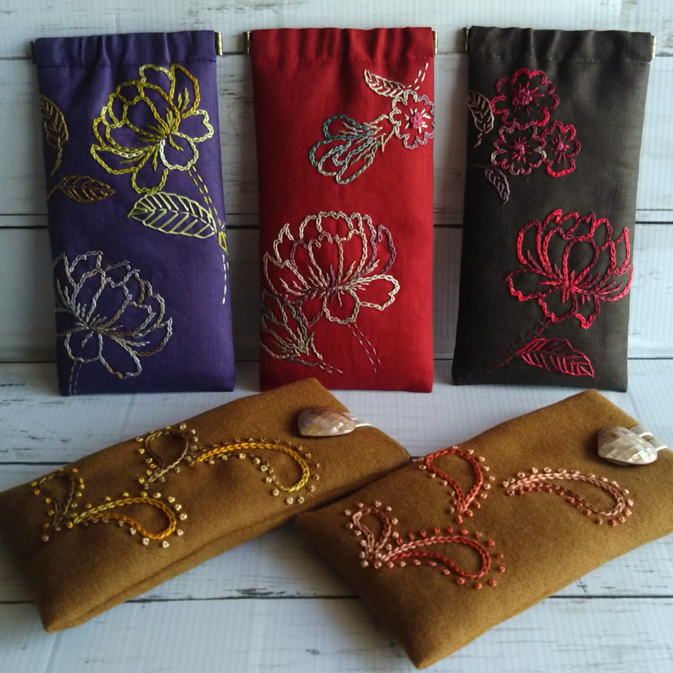 奥のばね口めがねケースは、何度撮り直しても和風に写ってしまって…折角の糸の良さが出てなくて残念。