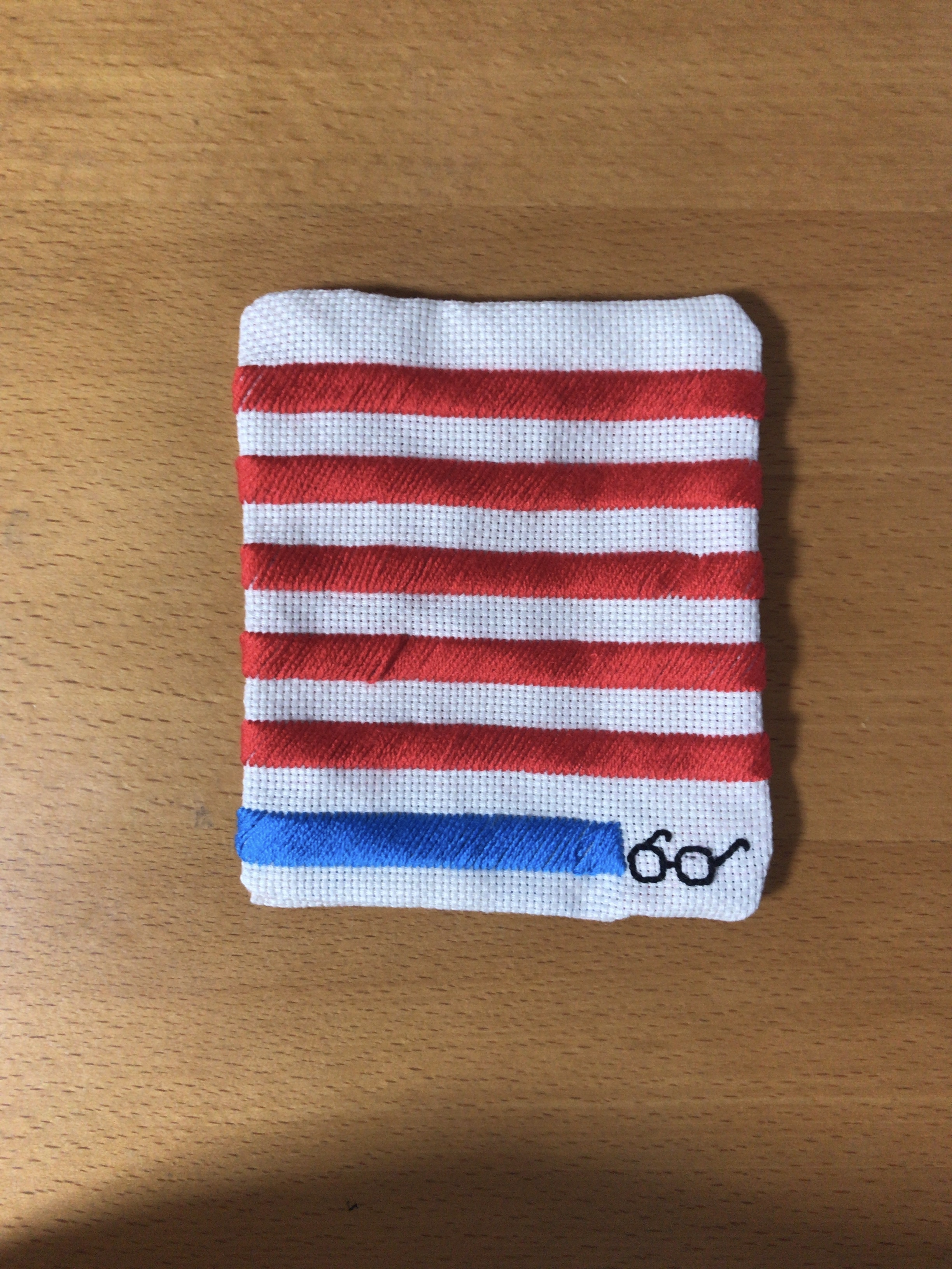 小さい時にハマった、“あの”キャラクターをイメージして作りました。刺繍は楽しいんだけど、やっぱり仕立てが苦手です。一応コースターです。