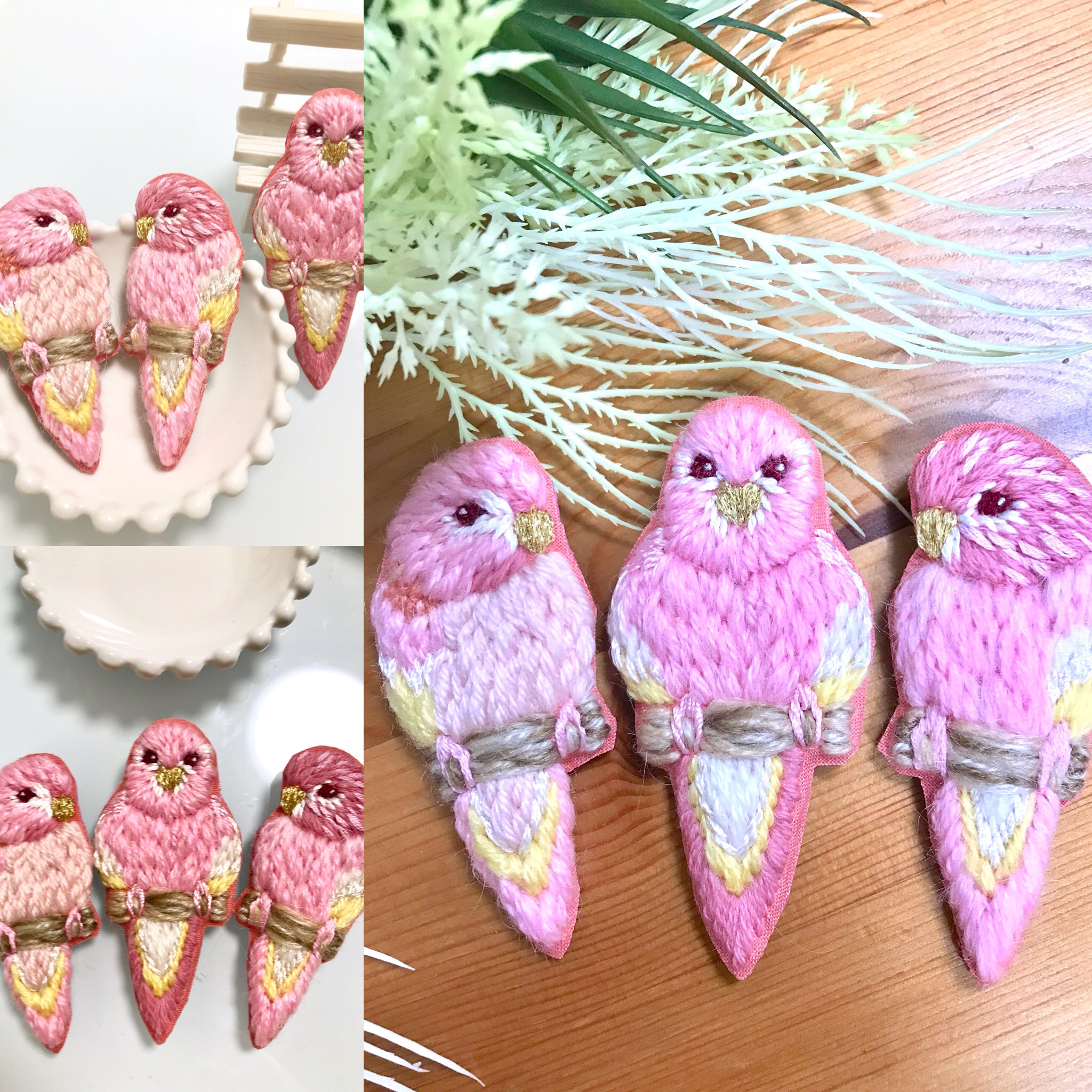 鮮やかなピンクの子たちもすごくかわいいですね。お話してるみたい。インコさんもいろいろ色のきれいな子いて、糸の配色を考えるのも楽しそうですね。