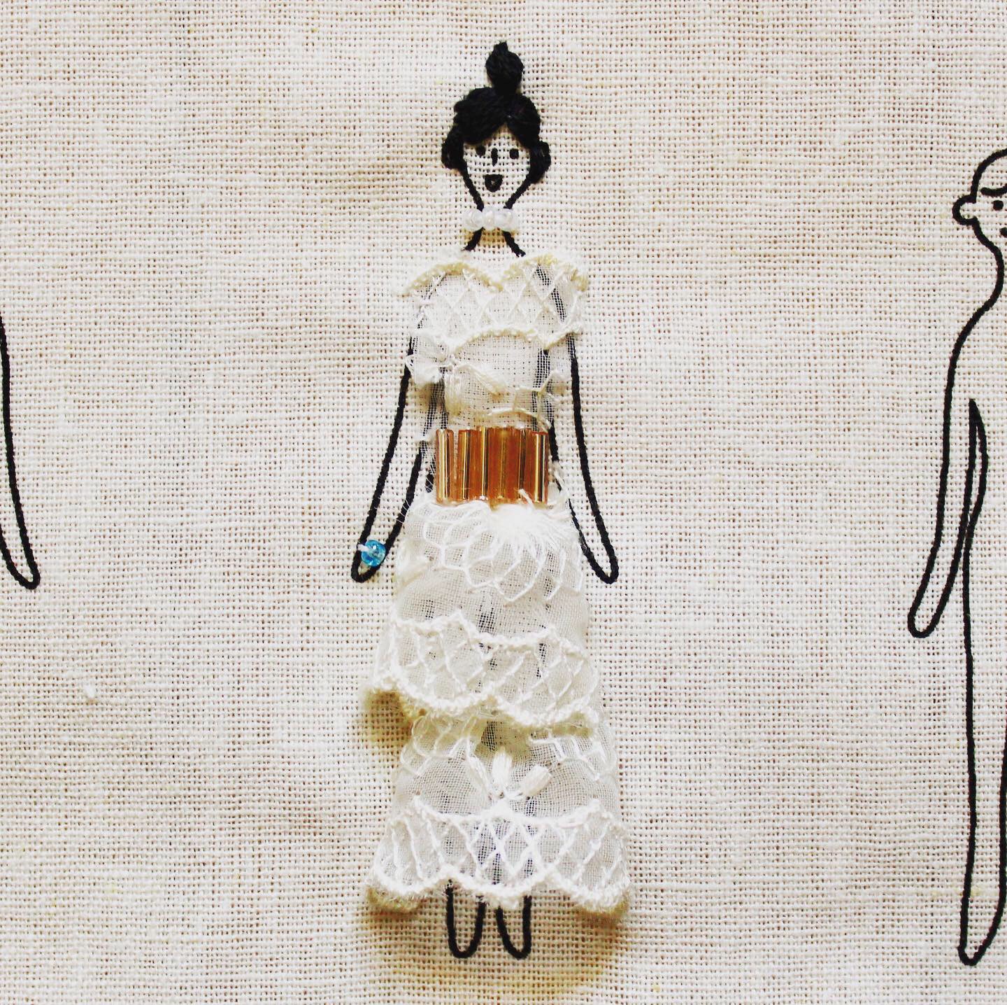 レースのドレス、素敵ですね。ビーズのベルトも華やかです。チョーカーやブレスレットもビーズで作ってナイスです!