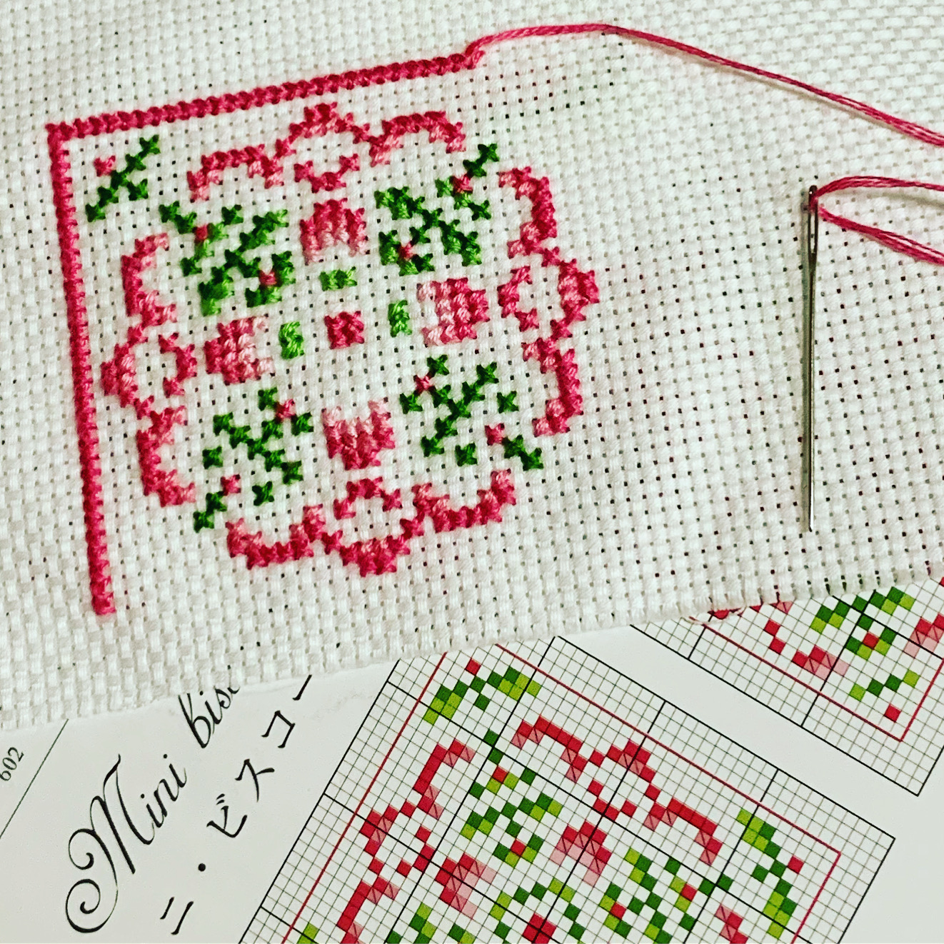 ピンクッションですね~。もはや、可愛らしく完成する予感!作ったことがないので、やってみたくなりました。表と裏の2枚をクロスステッチで刺繍をして行き、縫い合わせは四角ではなく、ちょうど半分くらいのところで縫い合わせる感じですよね。キットを買って来たらすぐ取り掛かれそうですね~v(^o^)