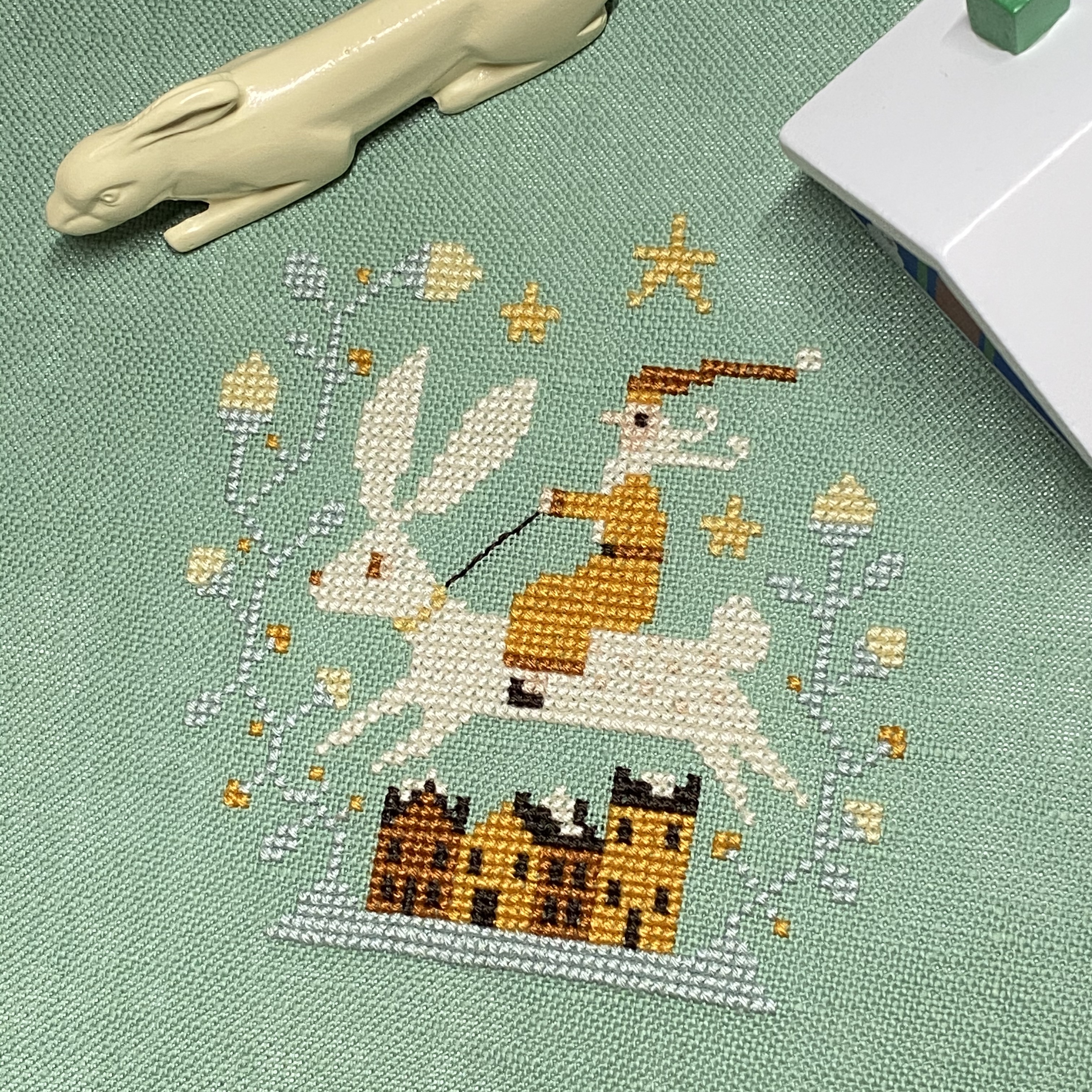 クリスマスのクロスステッチ。うさぎのトナカイなんて珍しくて、忙しいのについ刺してしまいました。