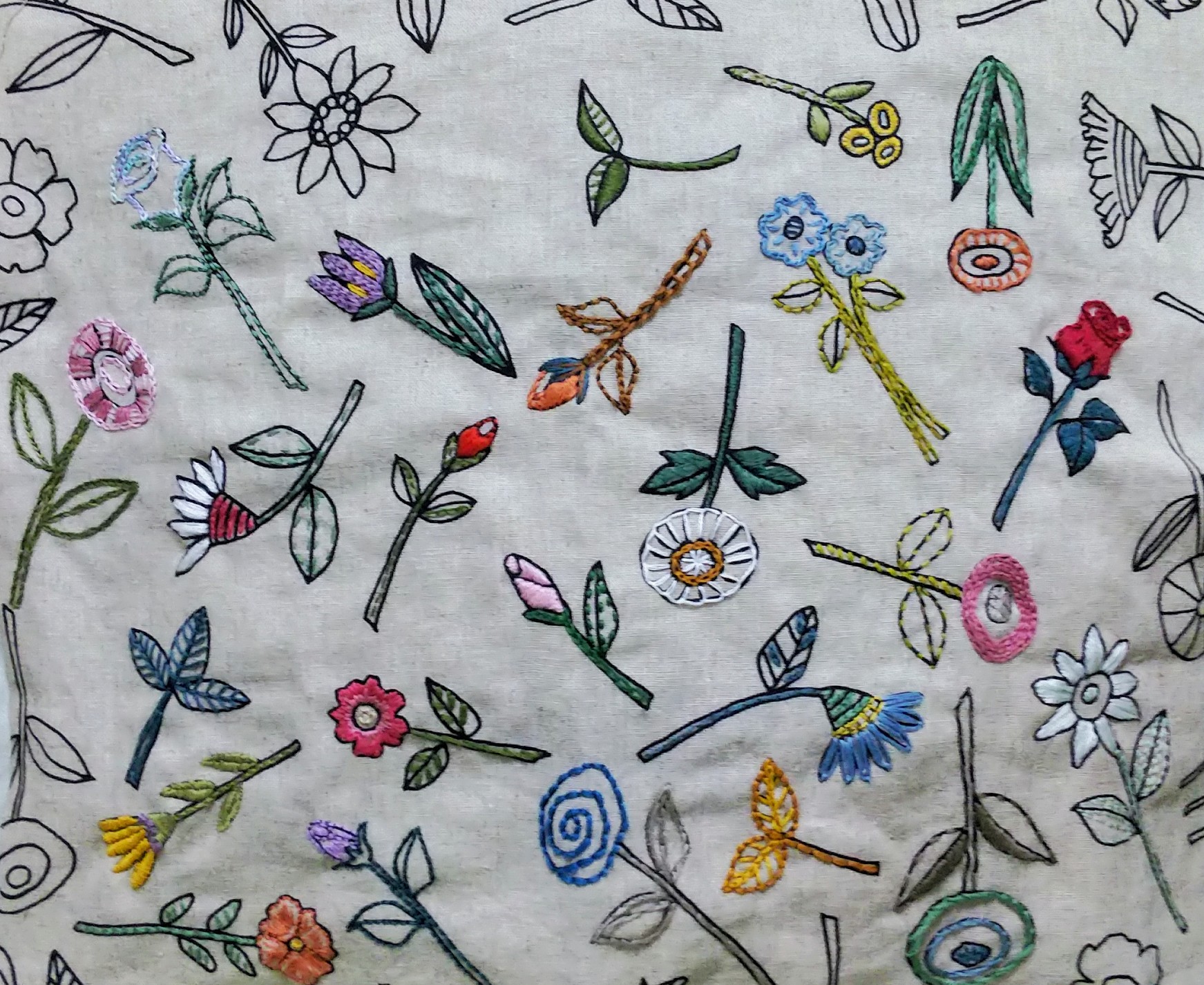 “ぬりえのように刺しゅうを楽しむ布”というコンセプトの通り、自分のできるレベルでいろいろなステッチにチャレンジ。