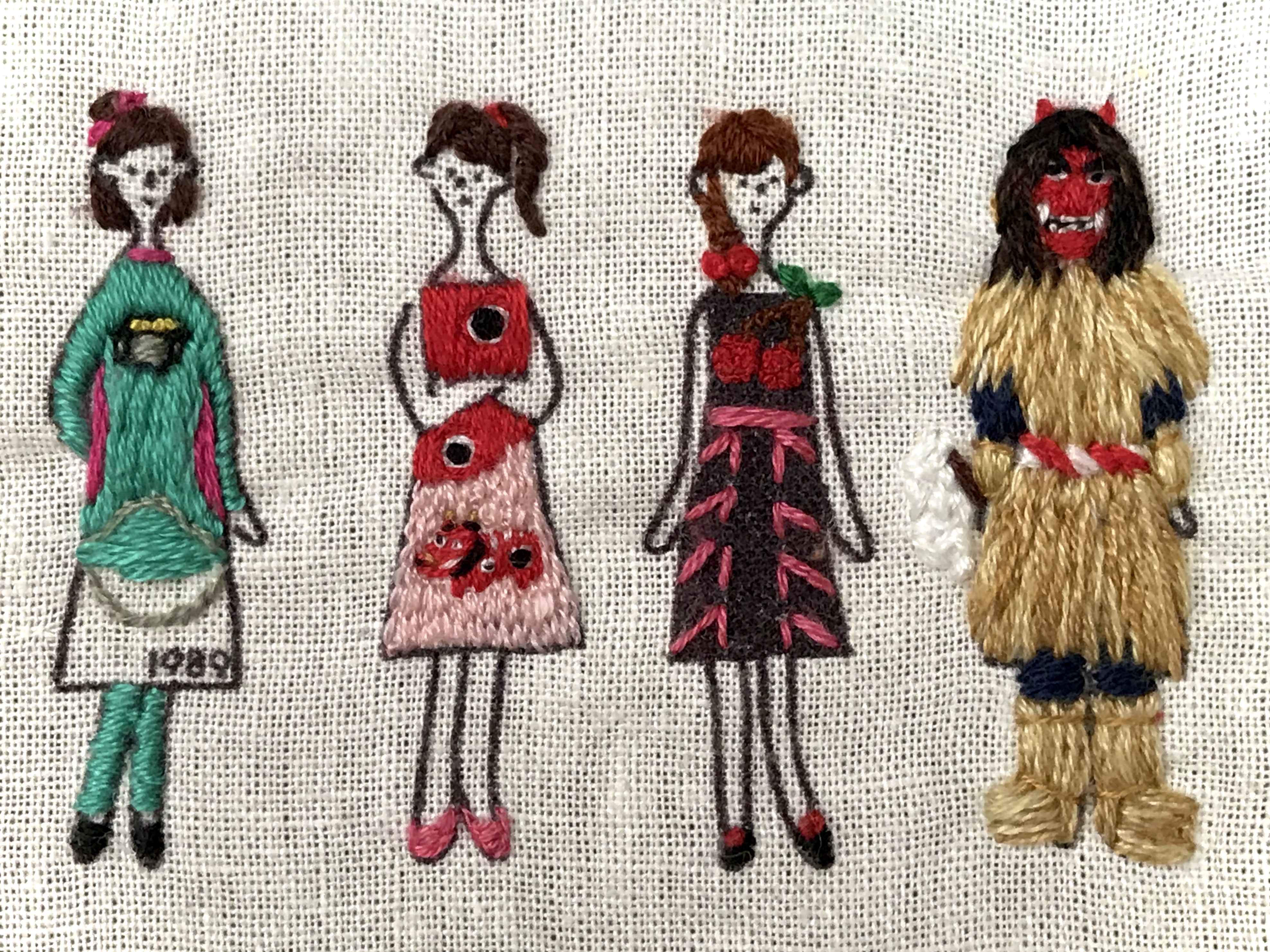 このテーマを思いついた時から外せないと思っていた秋田のなまはげ、藁の感じを出すため糸の色を複数使って頑張りました。