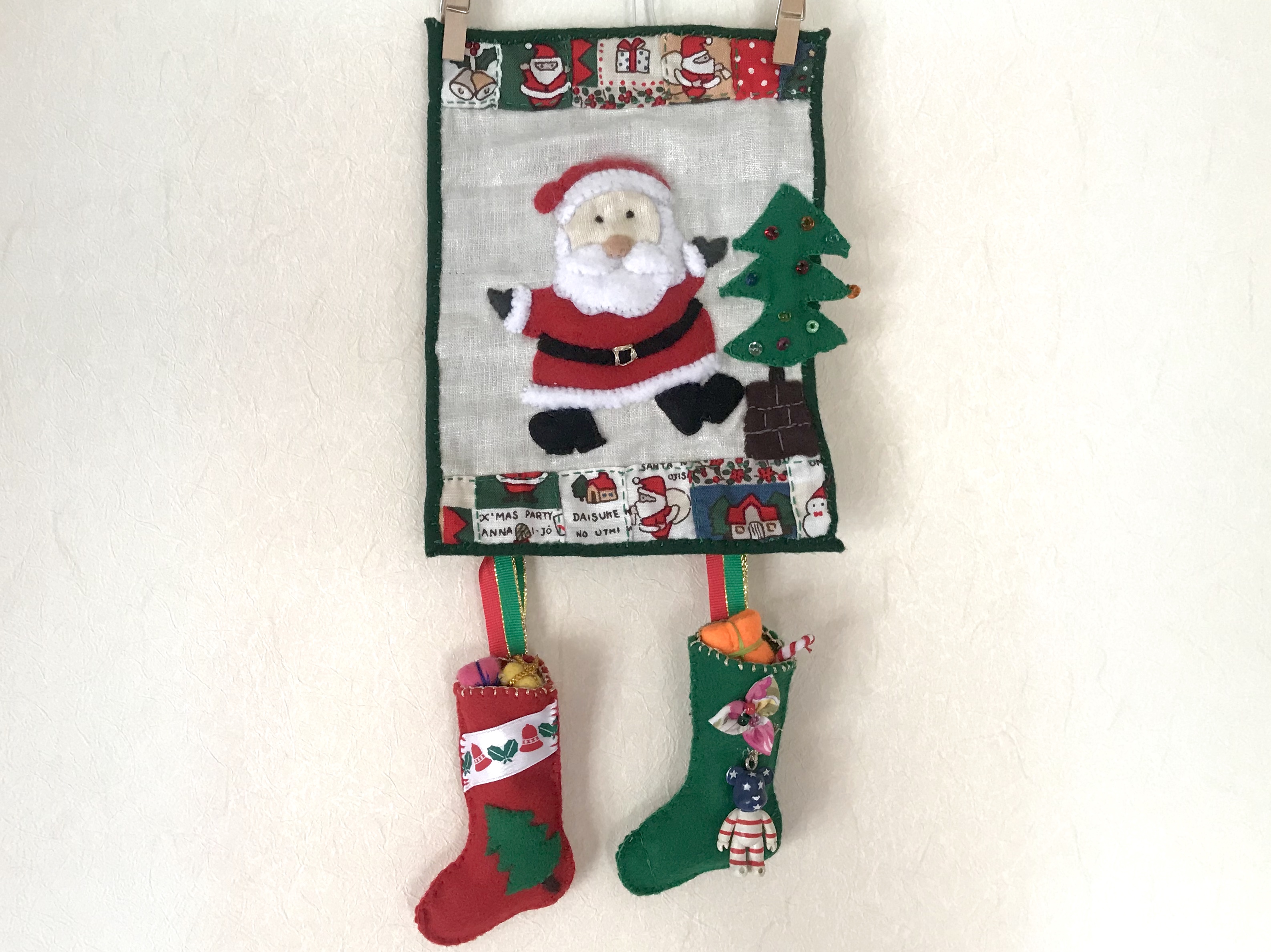 靴下にプレゼントが入るデザインとてもかわいいですね。飛び出てるツリーも動きがあって楽しいタペストリーだなって思います。