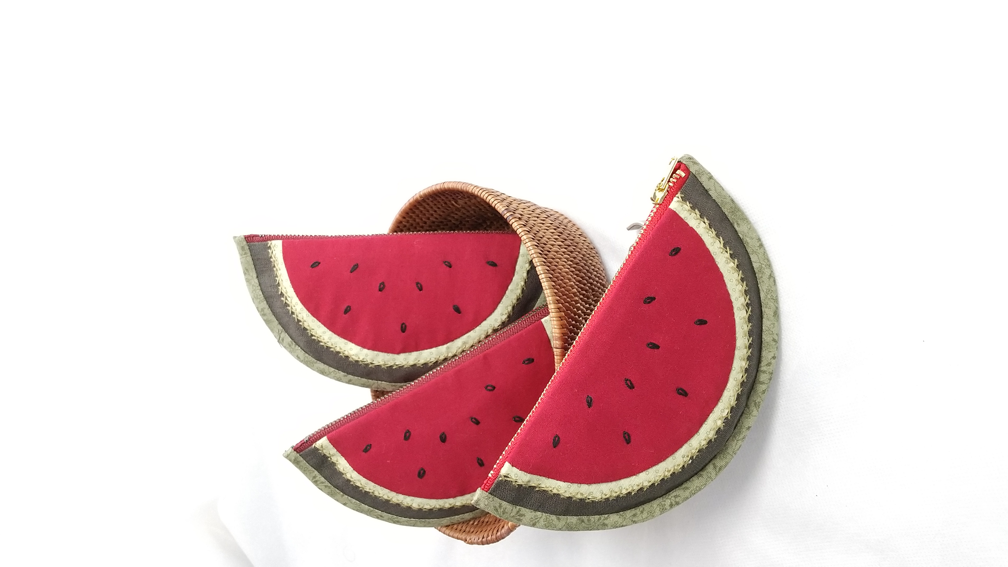 夏が近づいて来たのでスイカのポーチを作ってみました?バッグの中に入っていたら楽しいかな♪