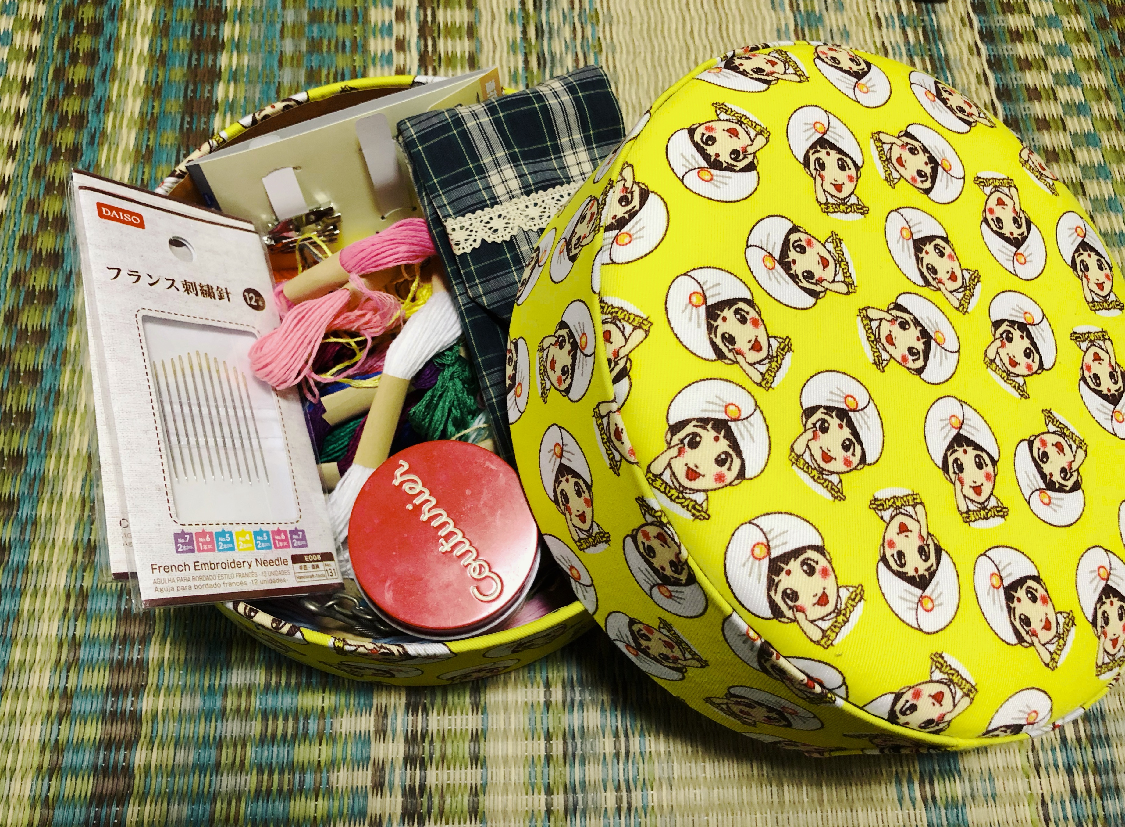 カレーせんべいが入っていた箱です。刺繍糸や、かぎ針を入れてますがかなり乱雑してます。刺繍糸を絡まずに収納する方法を教えて欲しいです…。