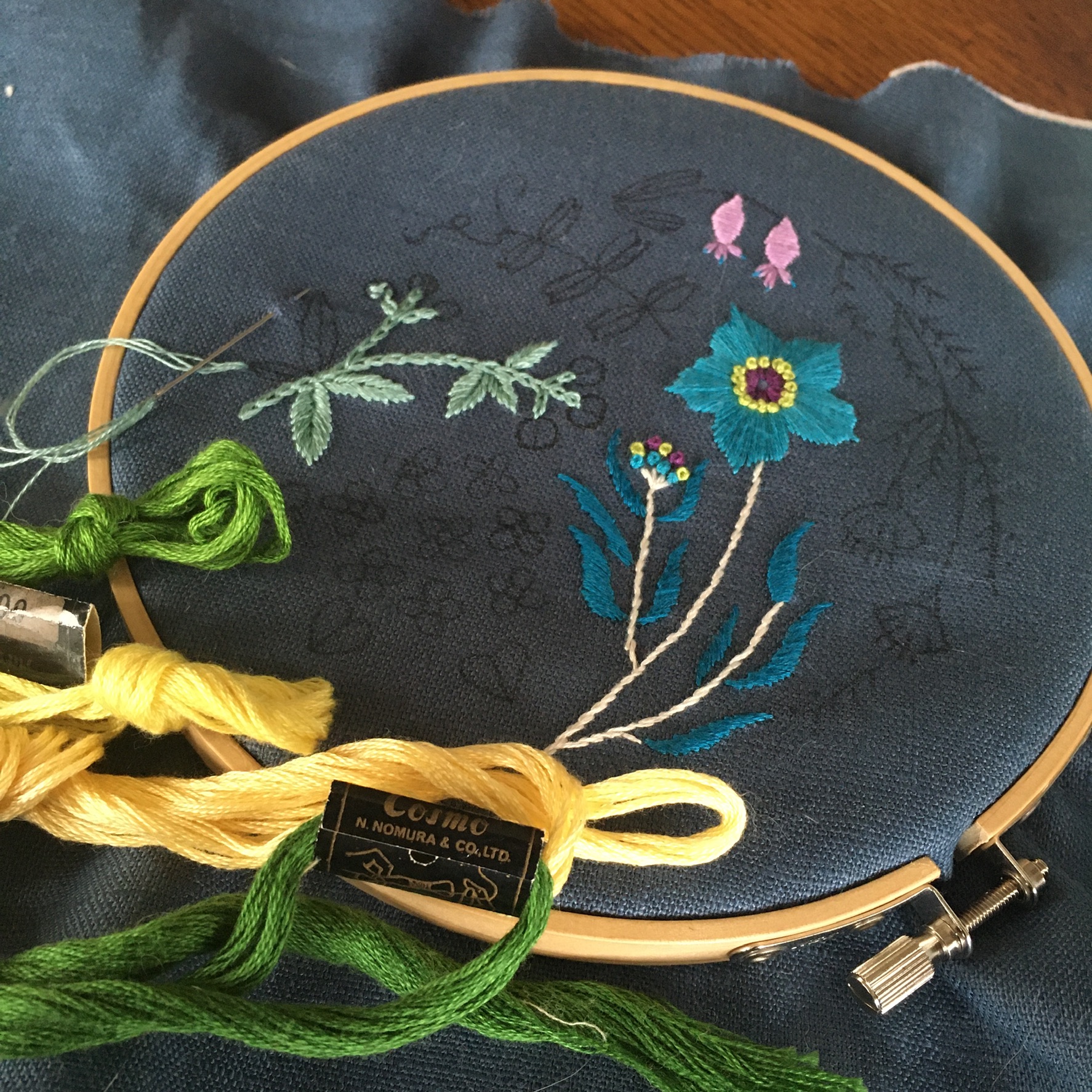 母から 譲り受けた 年代物のコスモ刺繍糸。