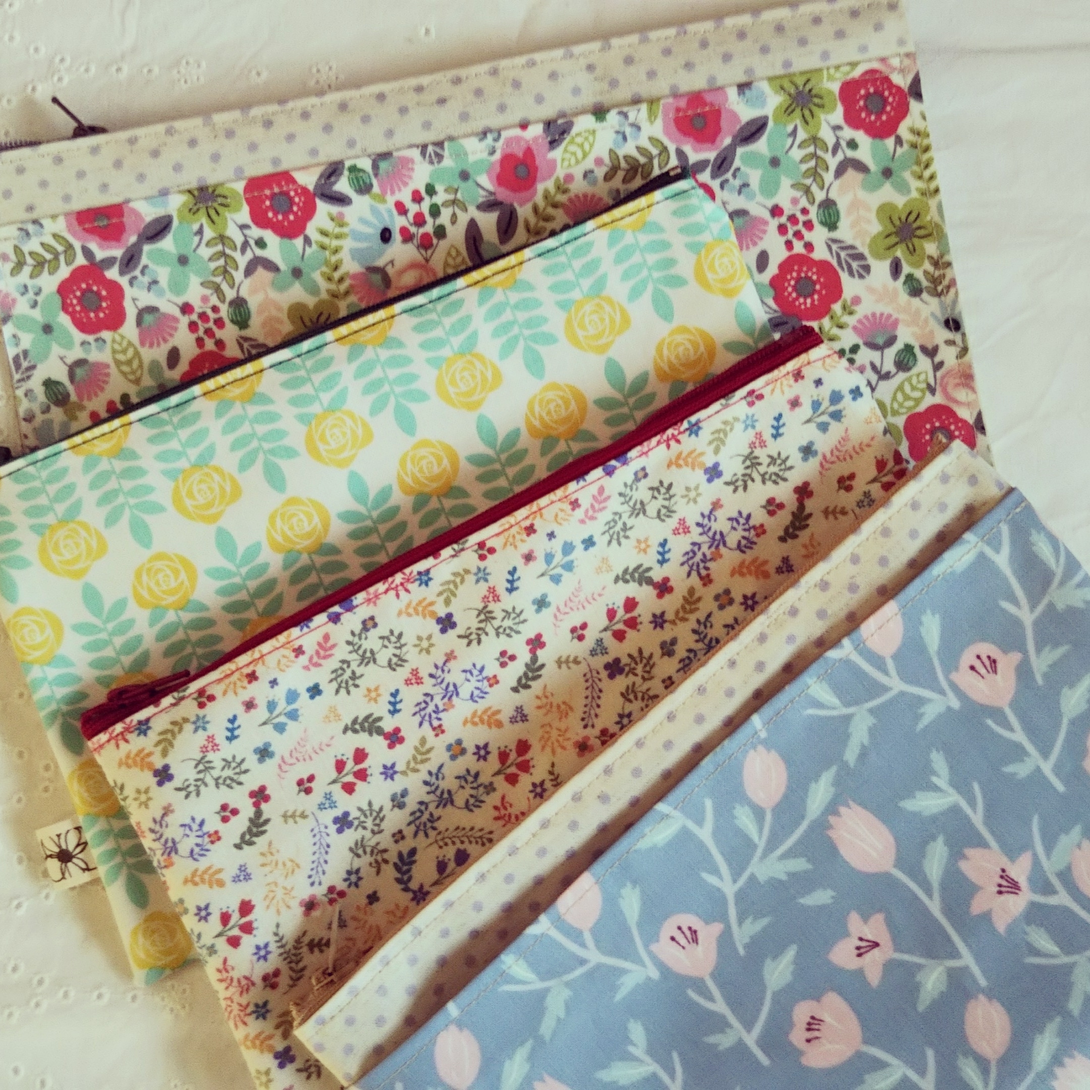 でも、少し飽きてきてしまいラミネート生地でマスクポーチを作り始めました。布マスクも使い捨てマスクも入れることが出来るように少し大きめ、ポケットも付けて。