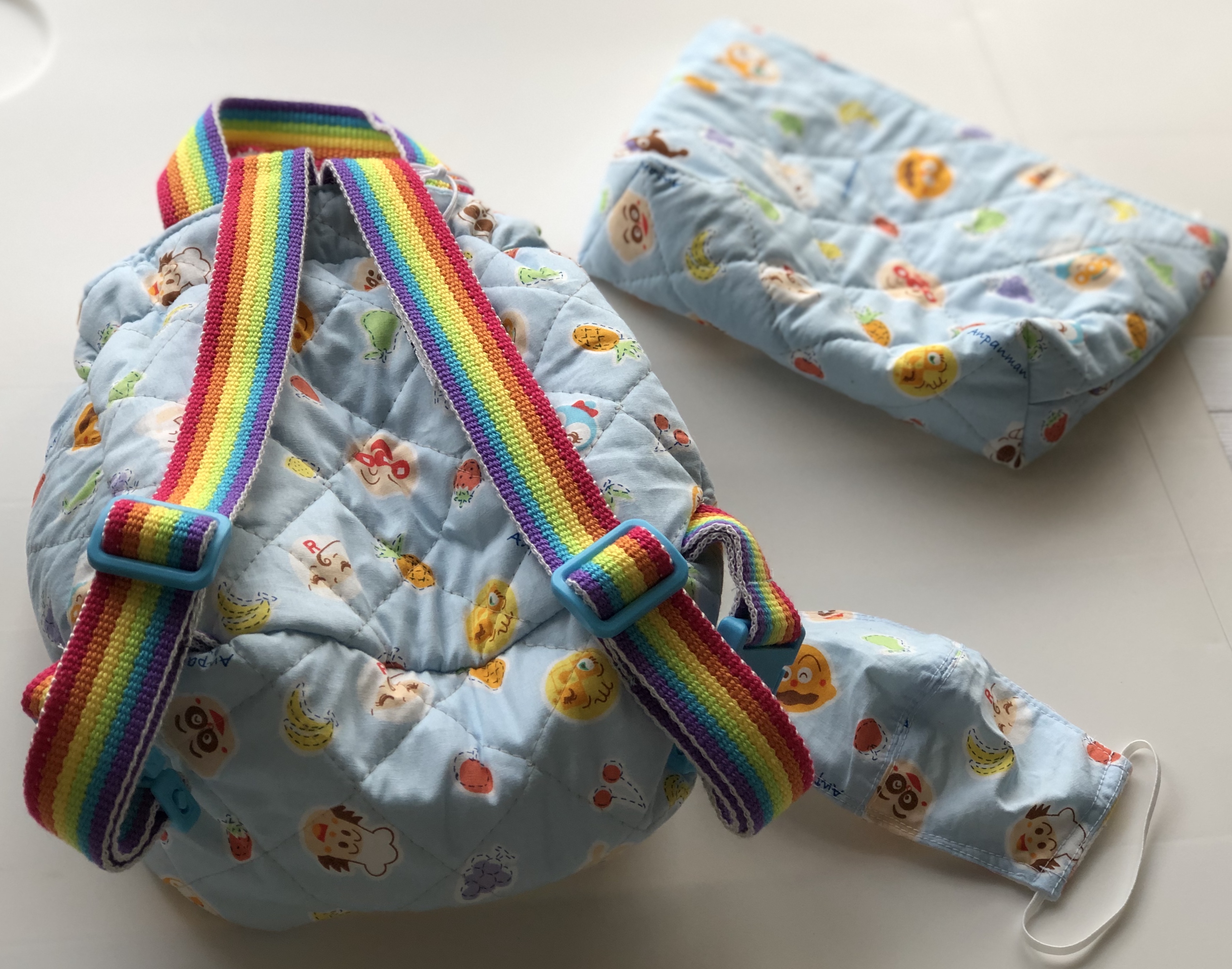 子どもにこれから使えるようにリュックとマスクとポーチ作りました^ ^