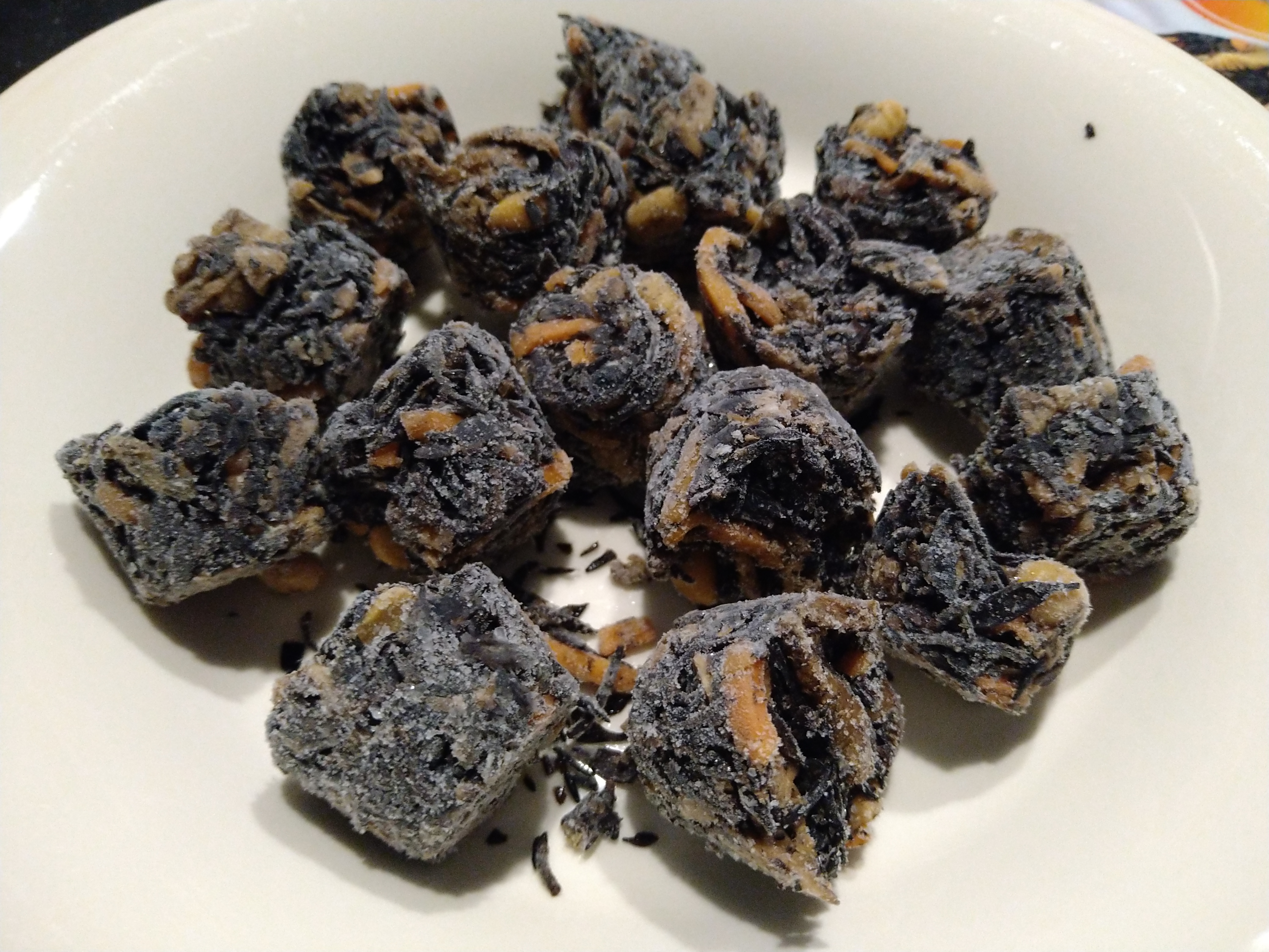 コロコロっとした小さなブロック状のひじきの煮つけを必要な分だけ取り出して温めるだけ!